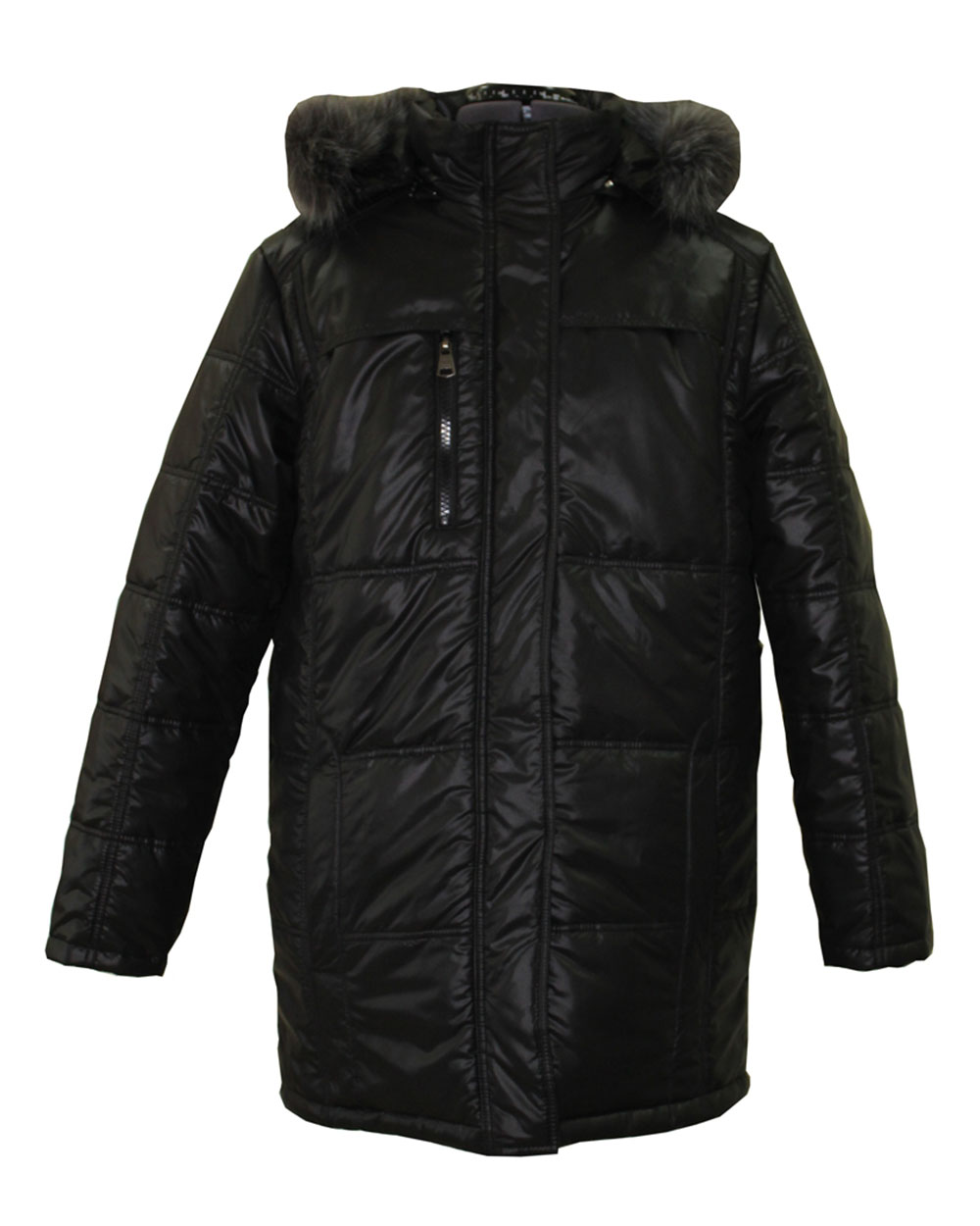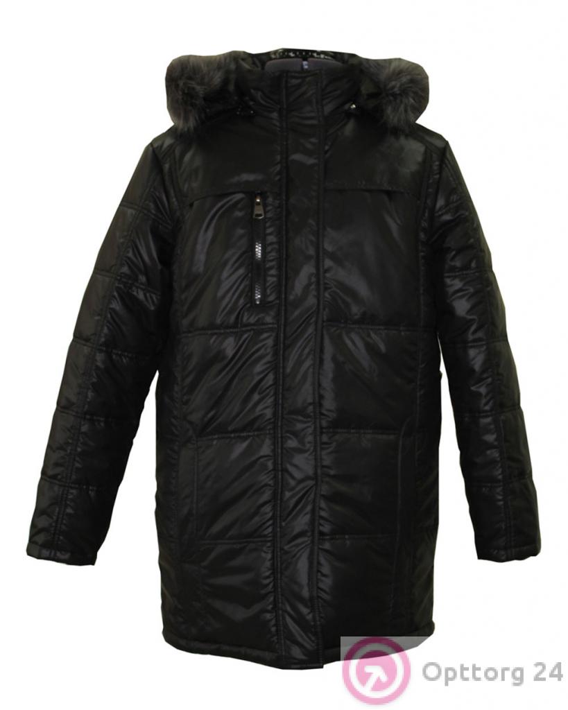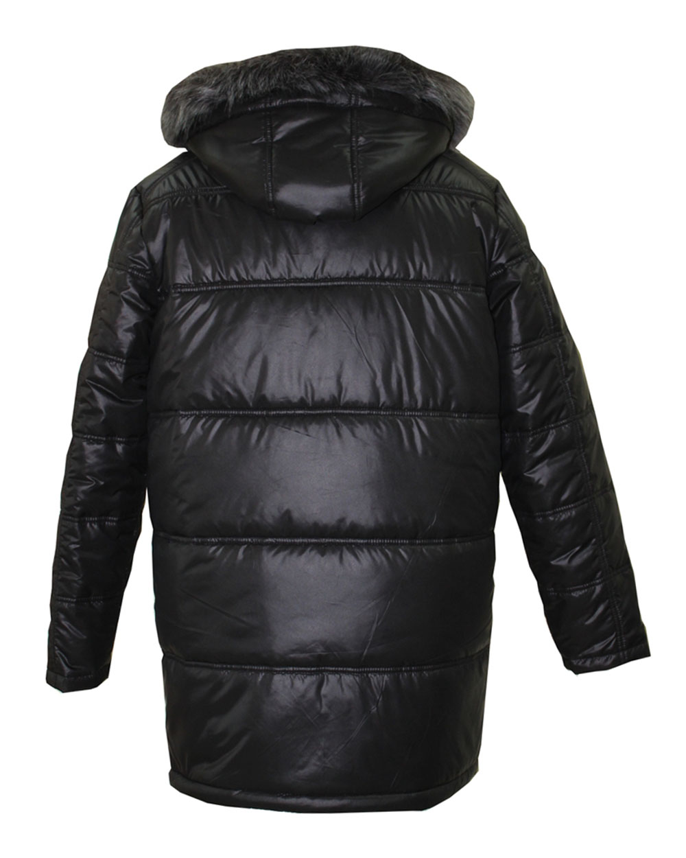 Куртка мужская зимняя черного цвета удлиненная с меховой опушкой оптом