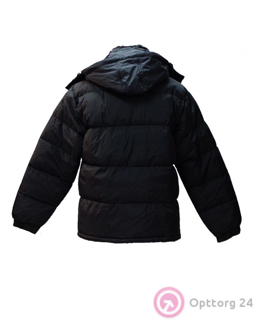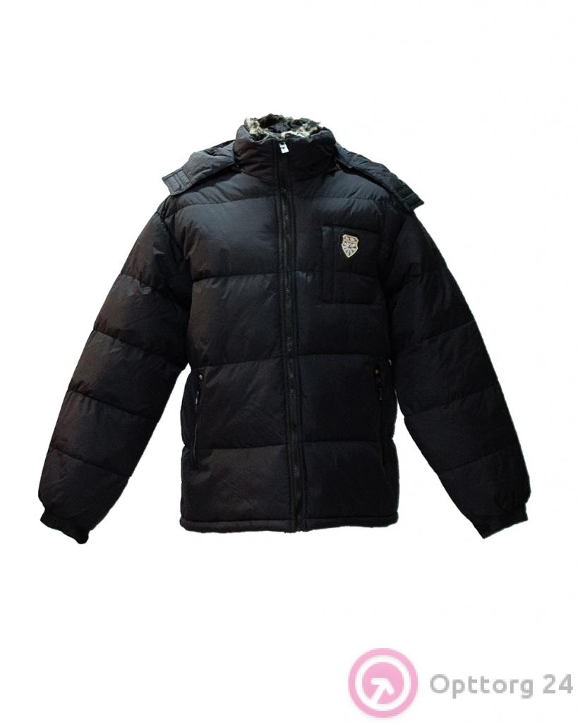 Куртка мужская зимняя на двойном синтепоне с мехом на воротнике чёрная оптом