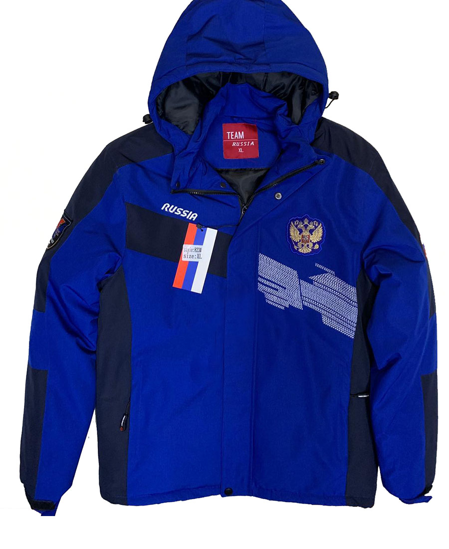 Описание: Куртка мужская зимняя синего цвета. Застежка на молнии. Два кармана на молнии. Есть капюшон