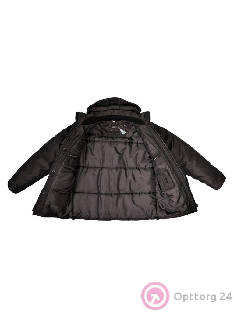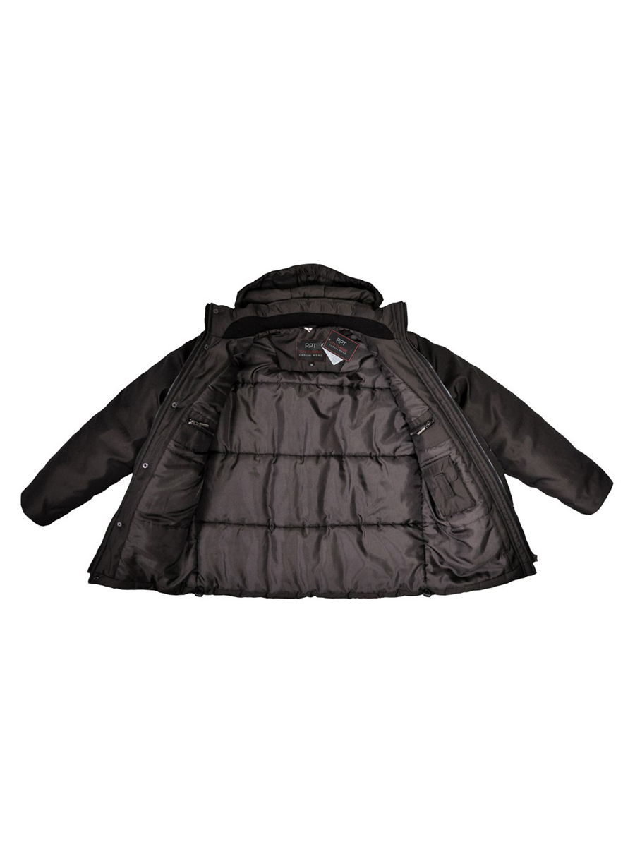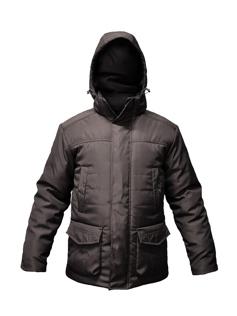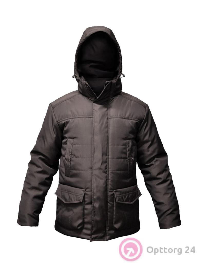 Куртка мужская зимняя утепленная черная с капюшоном. Есть четыре кармана.