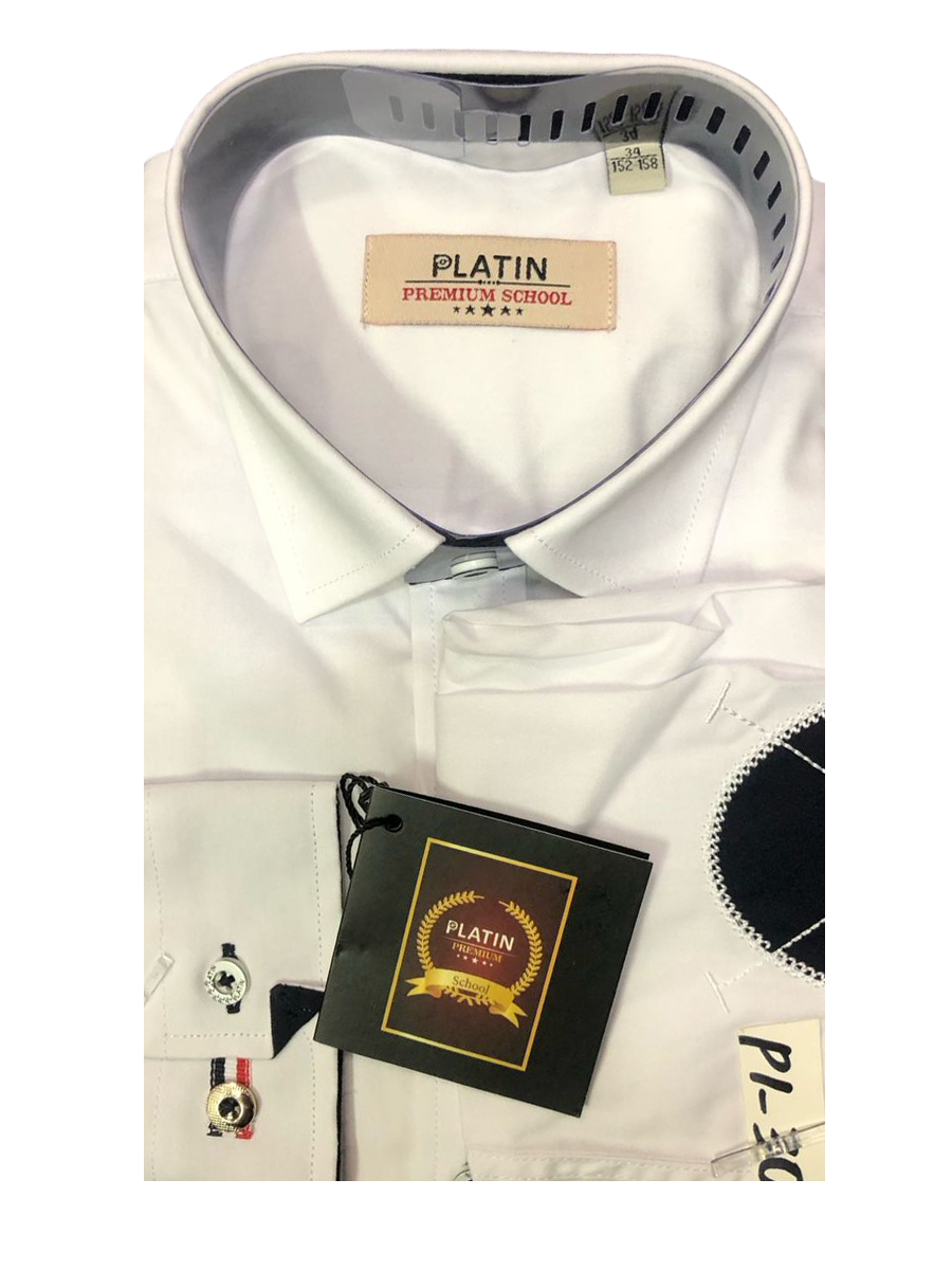 Описание: Современная, модная рубашка Platin, прямая, стильный дизайн, белая, на пуговицах с длинными рукавами, с контрастной черной нашивкой.