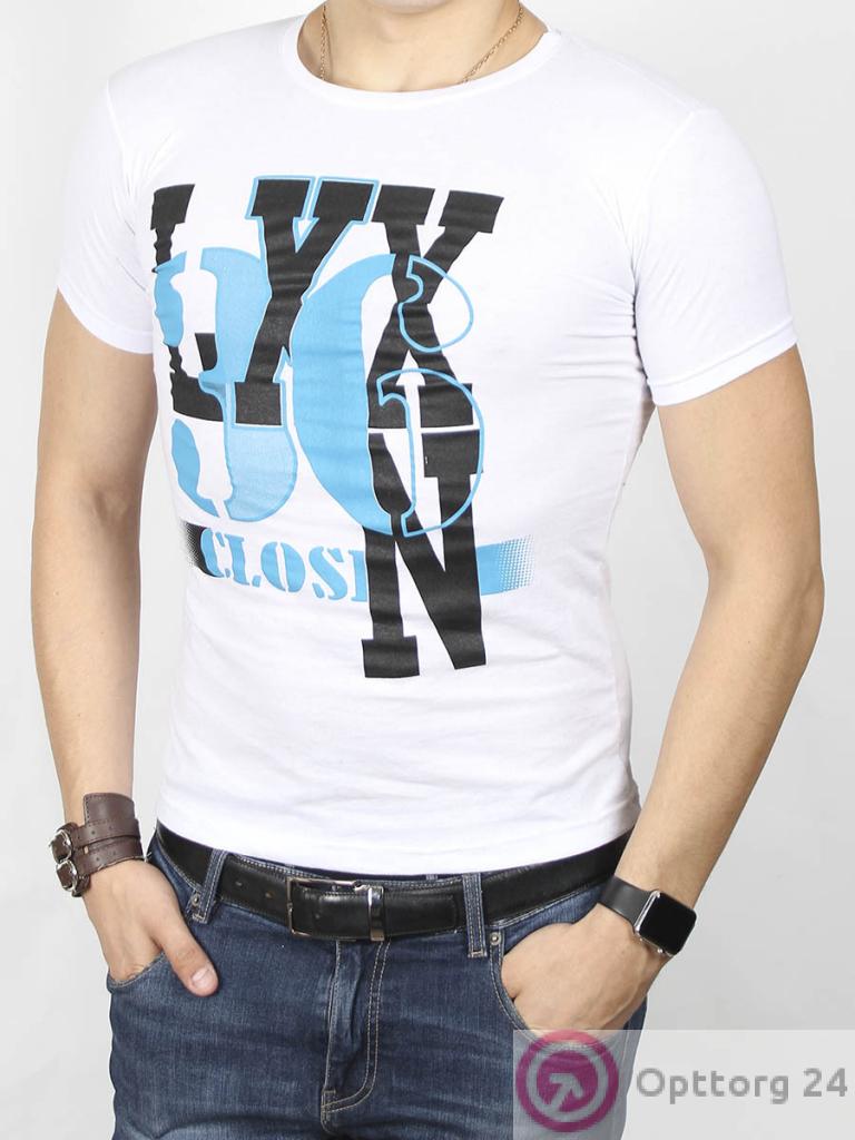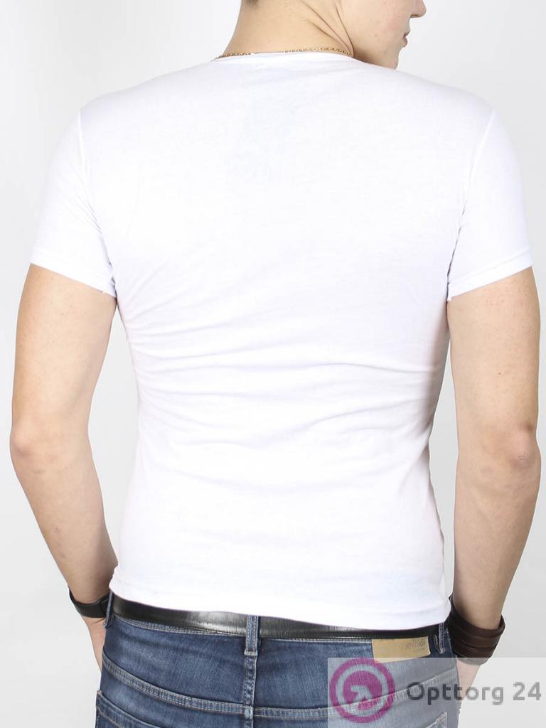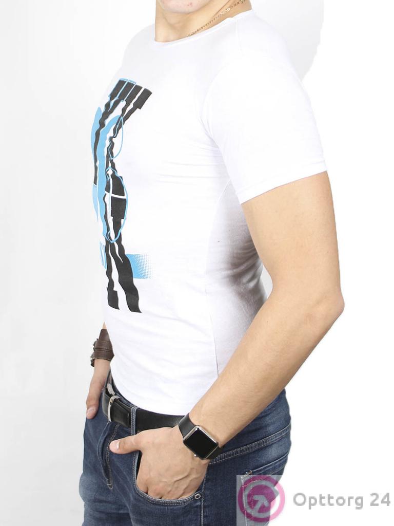 Мужская футболка белого цвета с принтом на передней части изделия.