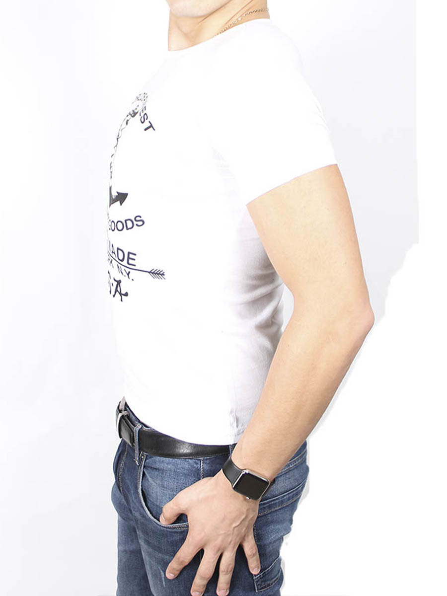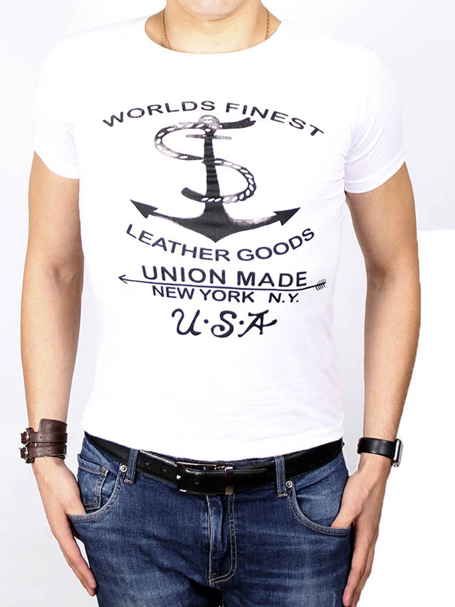 Футболка мужская белого цвета с принтом в виде черного якоря.