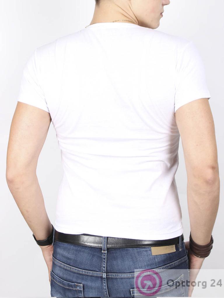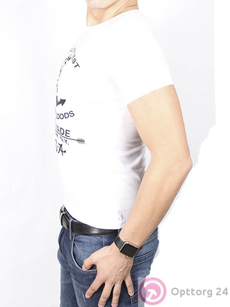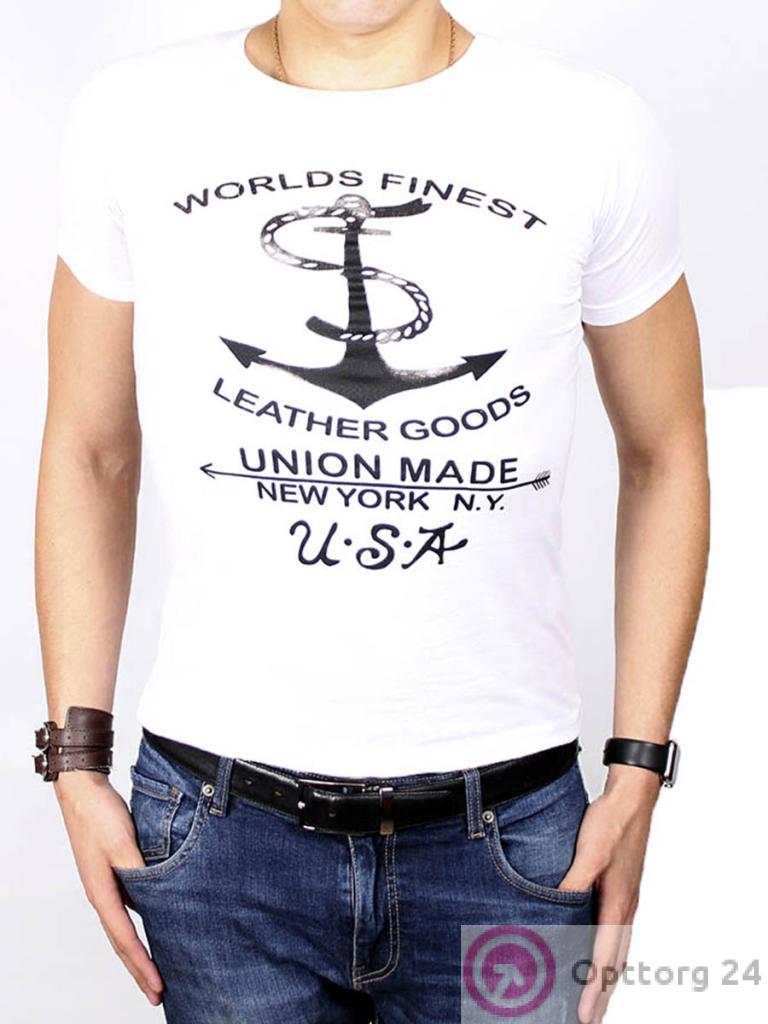 Мужская футболка белого цвета с черным якорем на груди изделия. оптом