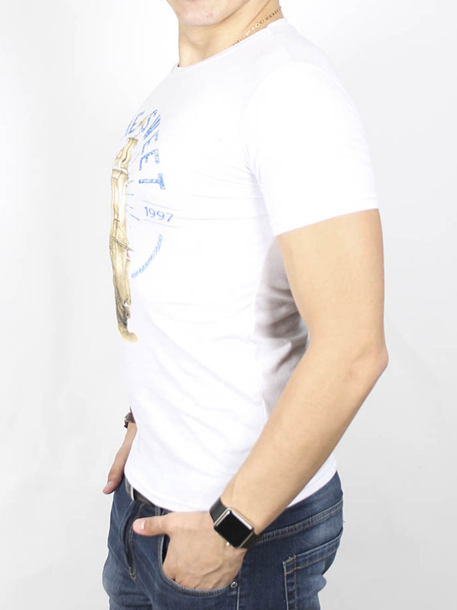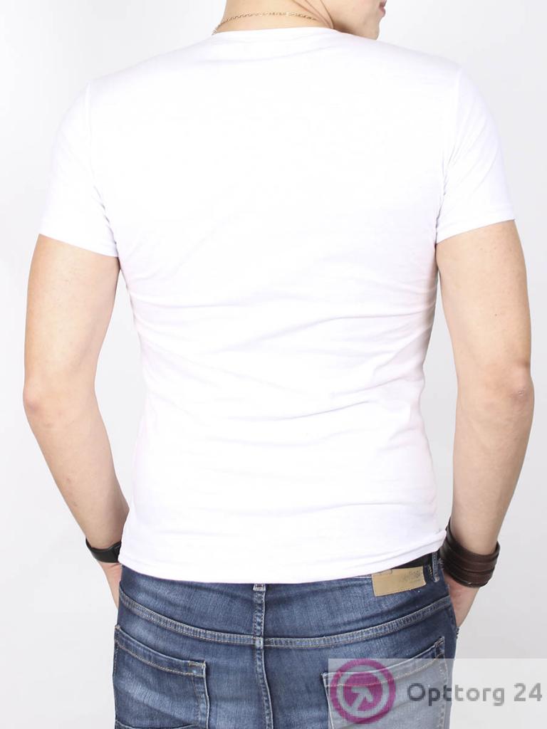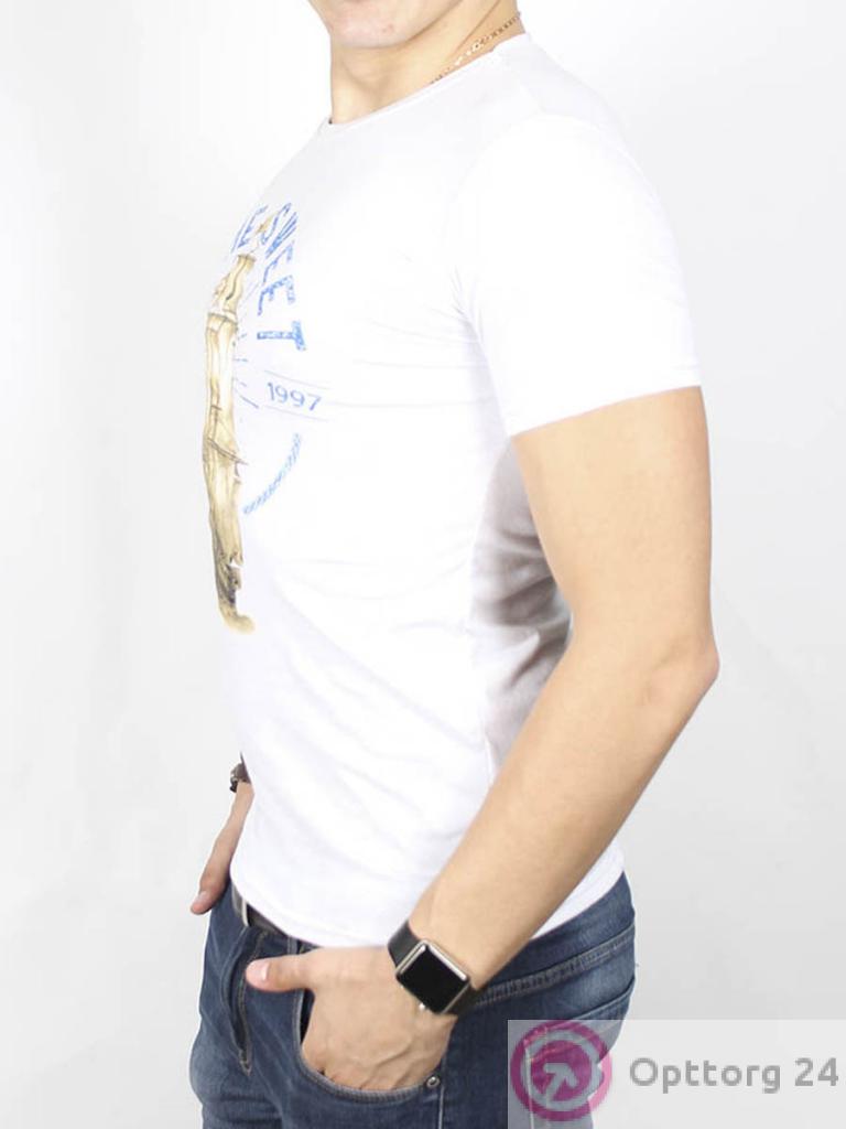 Мужская футболка белого цвета с принтом на передней части изделия. оптом