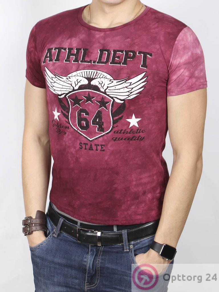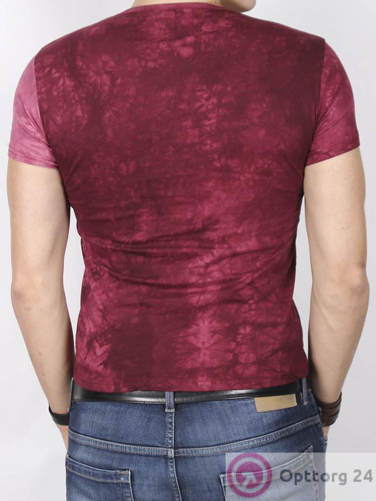 Мужская футболка бордового цвета с принтом. оптом