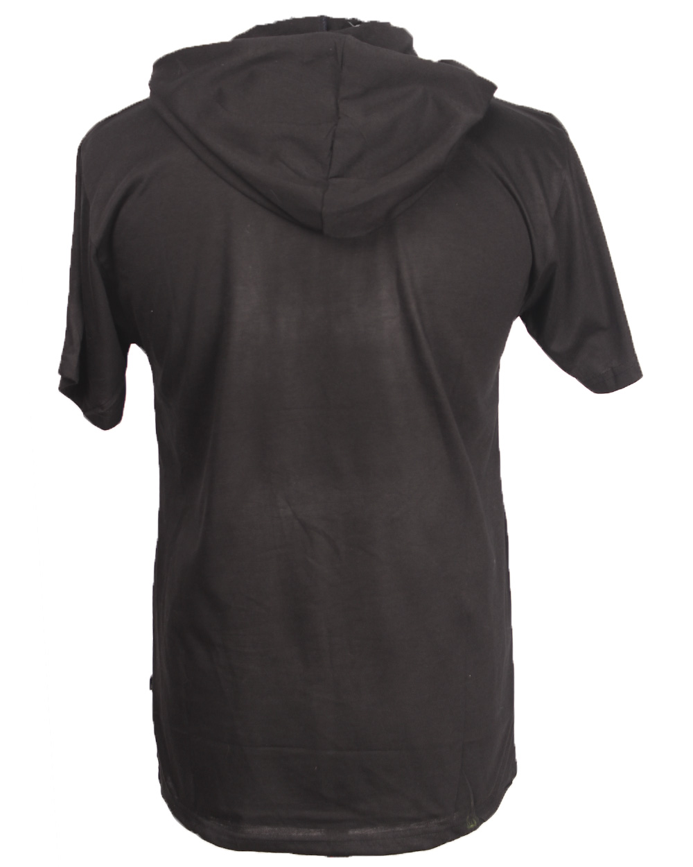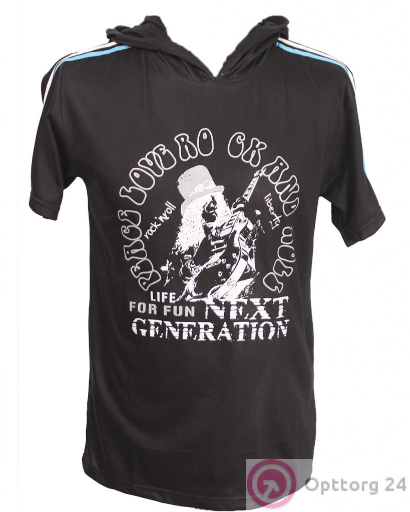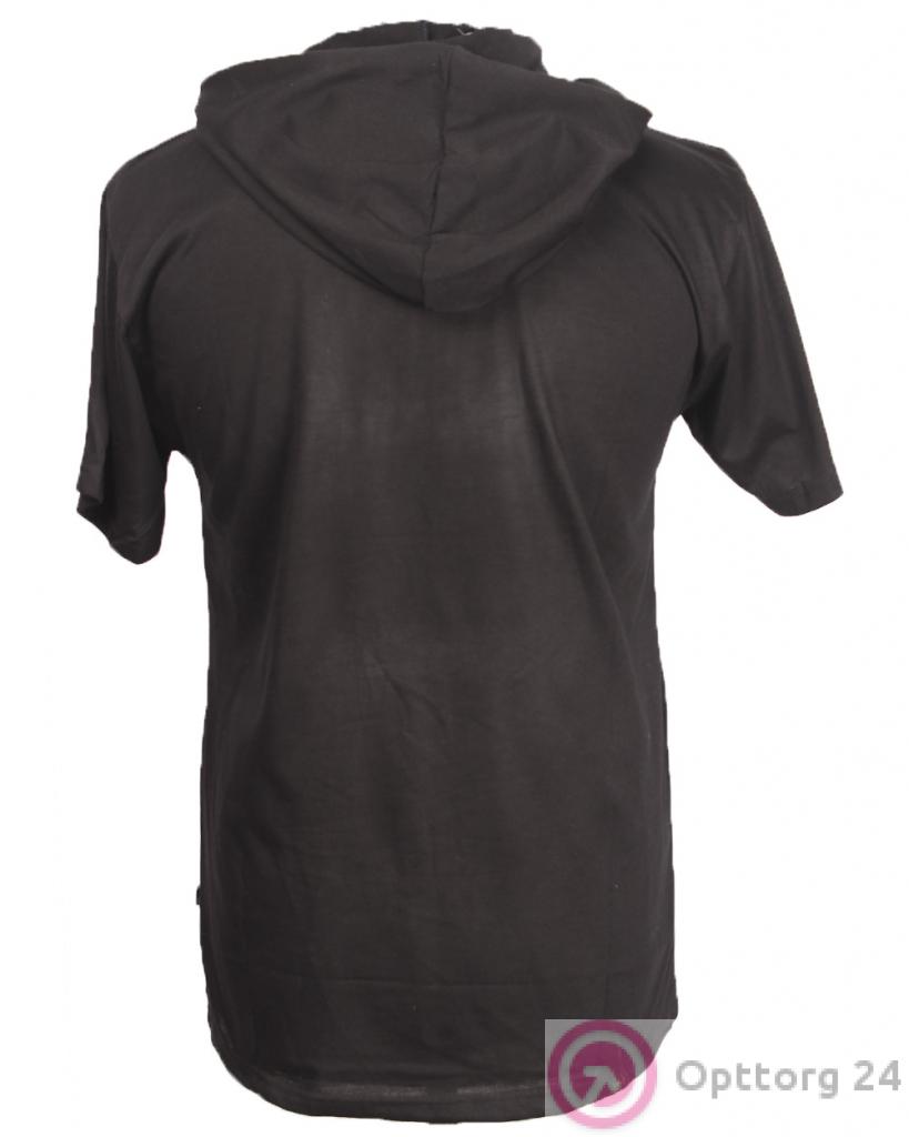 Мужская футболка черного цвета. На передней части изделия расположен белый принт.