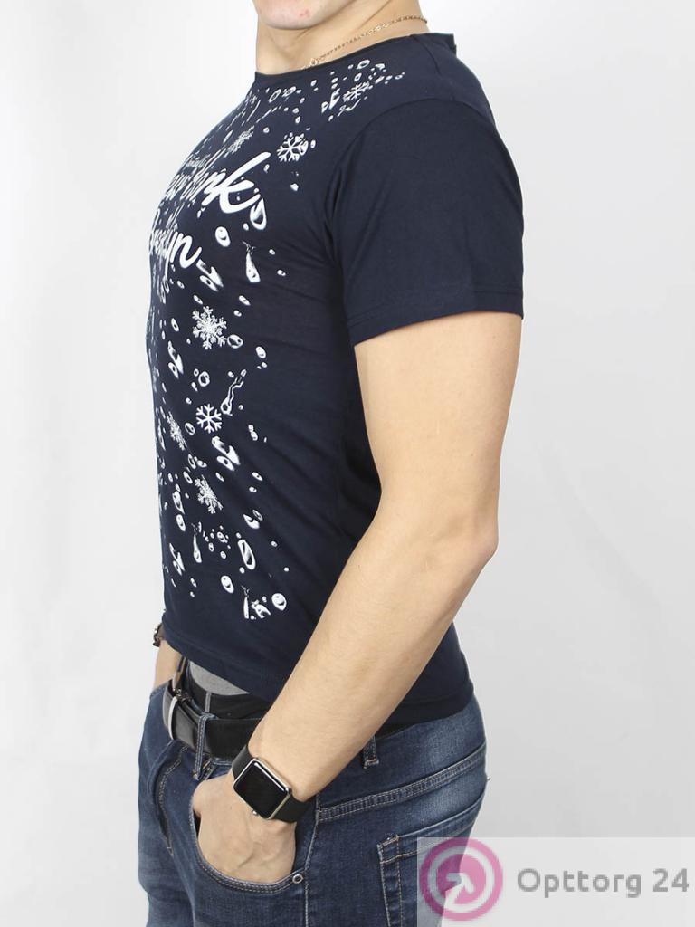 Футболка мужская с кротким рукавом и принтом белого цвета по всей поверхности изделия.