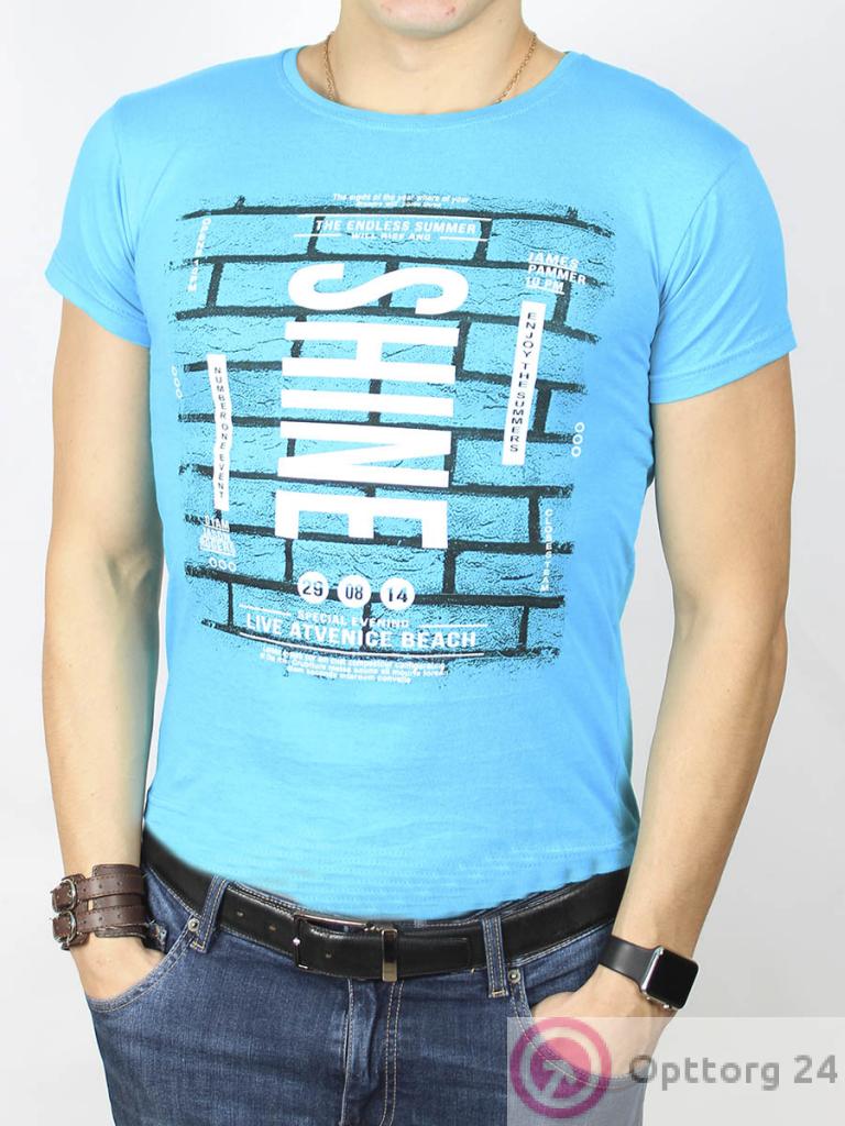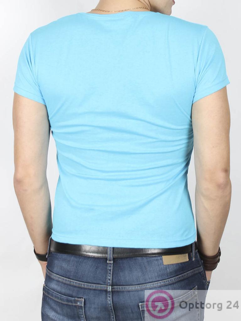Мужская футболка голубого цвета с принтом на передней части изделия.