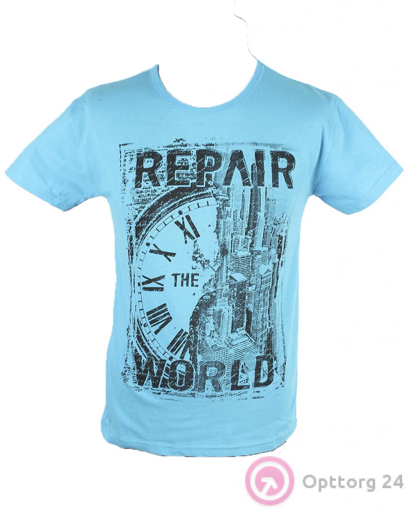 Мужская футболка голубого цвета с принтом в виде часов оптом