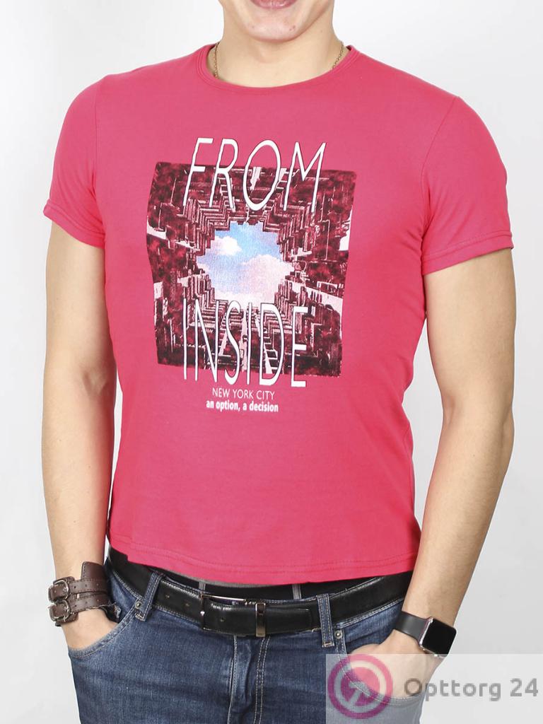 Мужская футболка красного цвета с принтом на передней части изделия. оптом