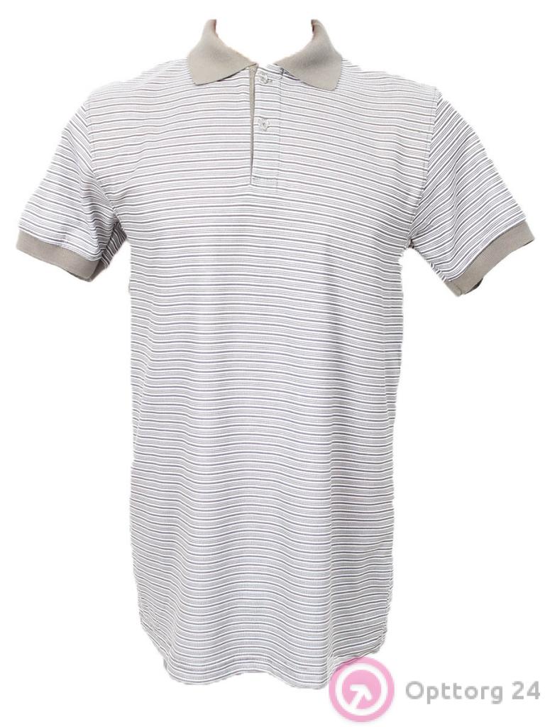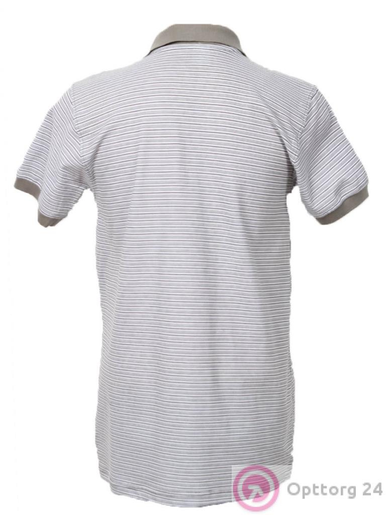 Мужская футболка-поло белого цвета с бежевой полоской. оптом