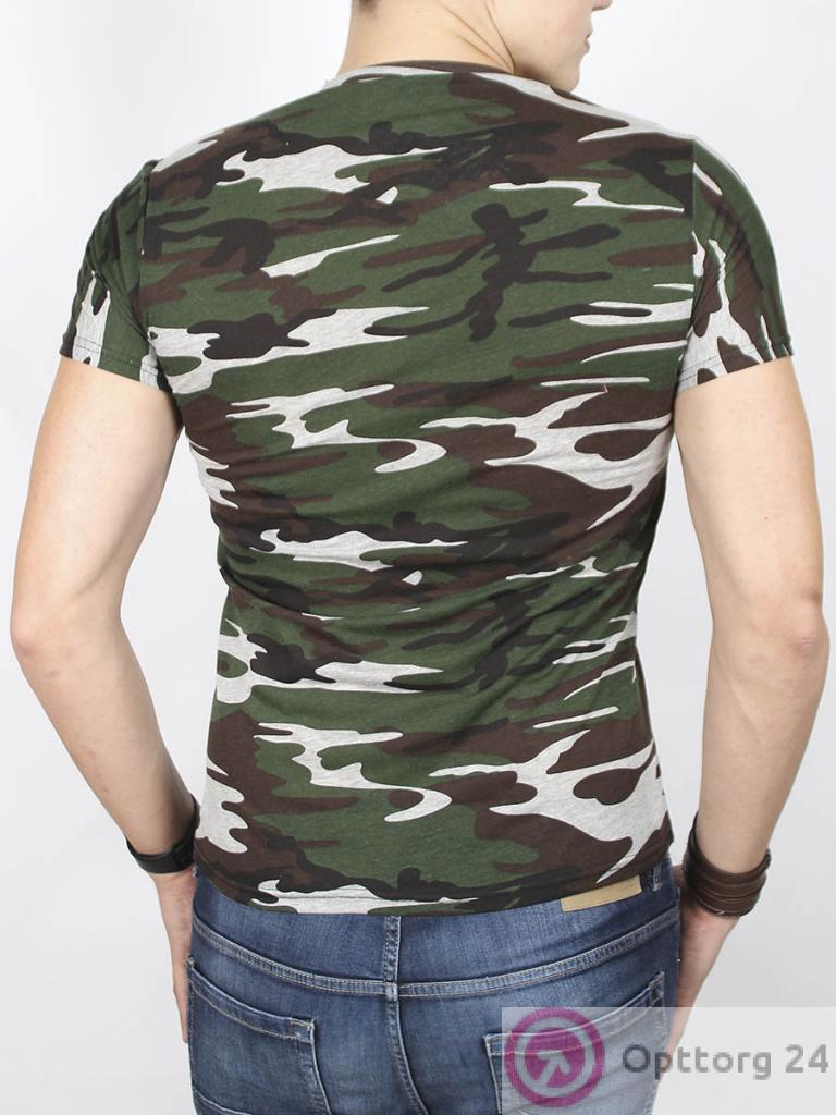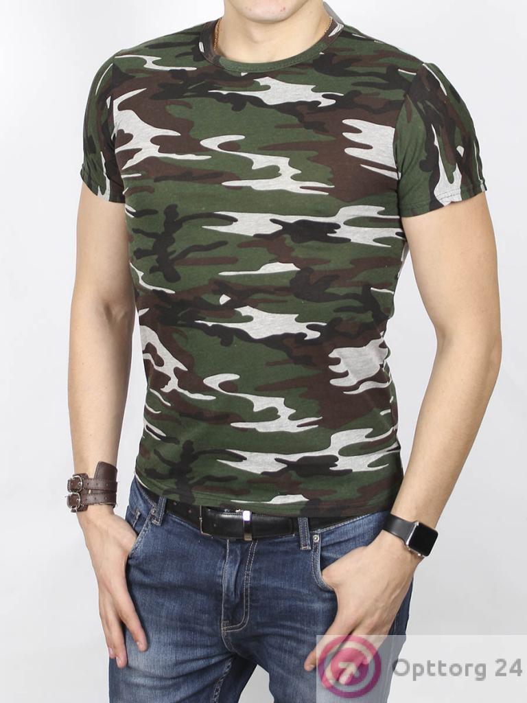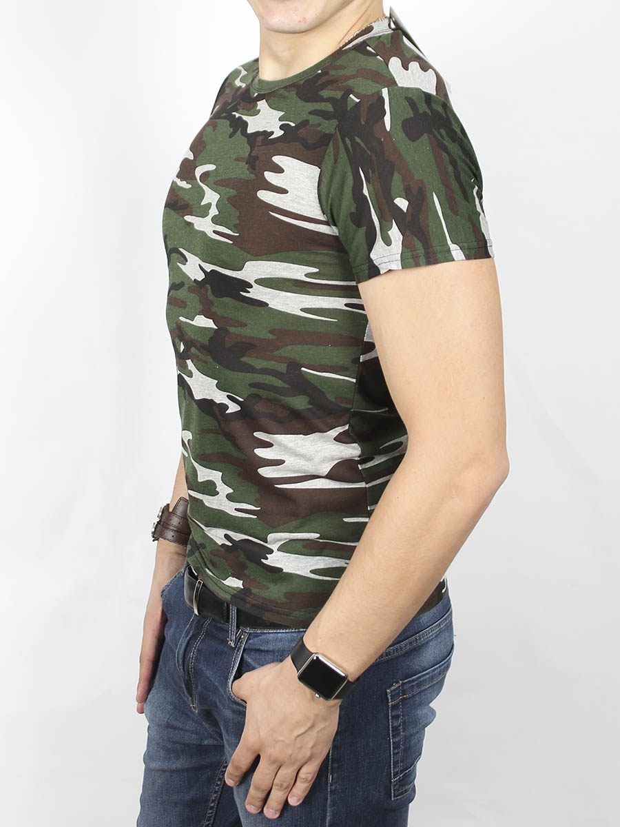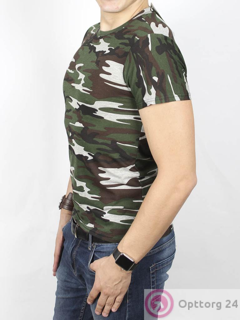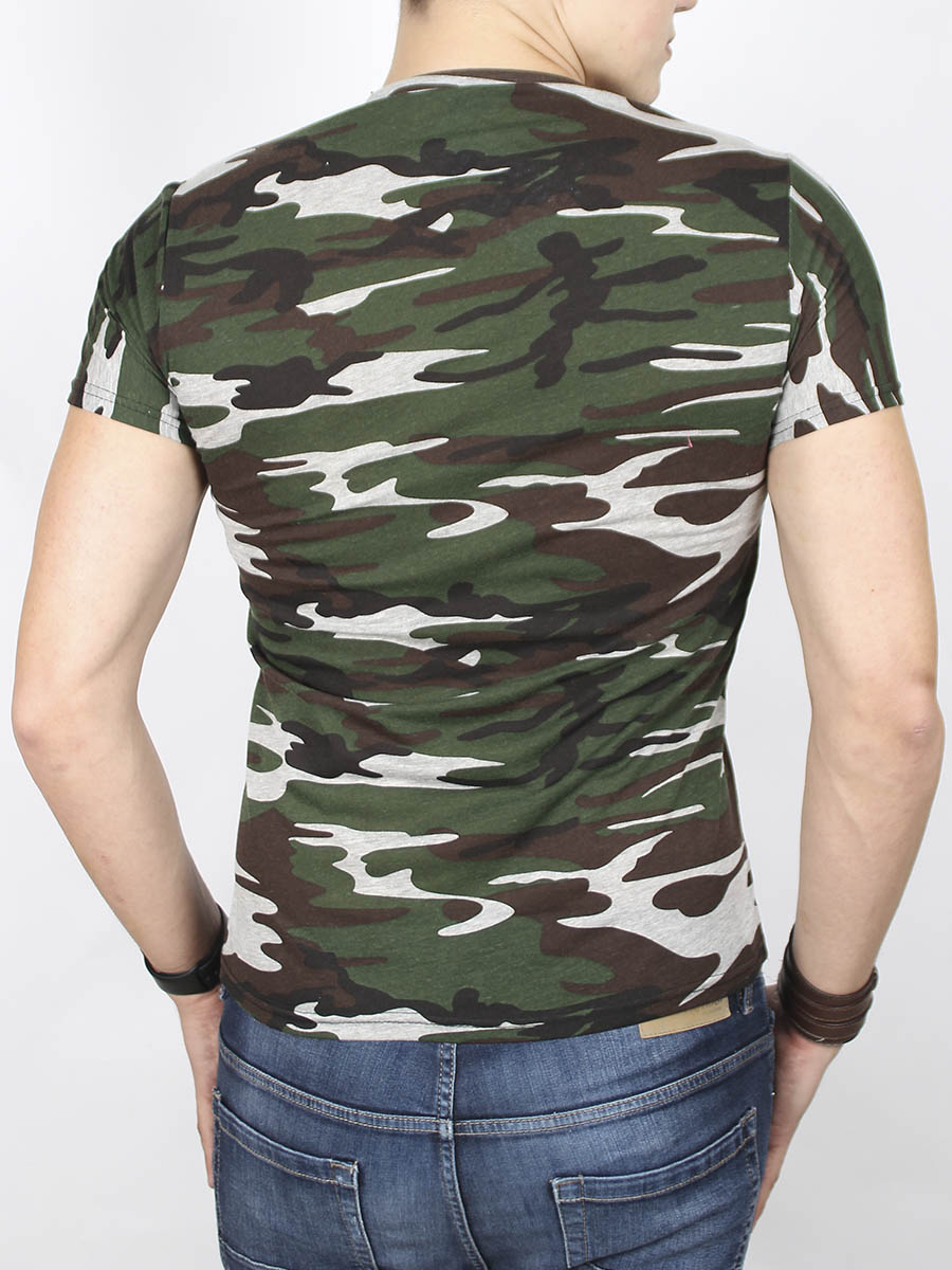 Футболка мужская зеленого цвета с военной расскраской "флора"