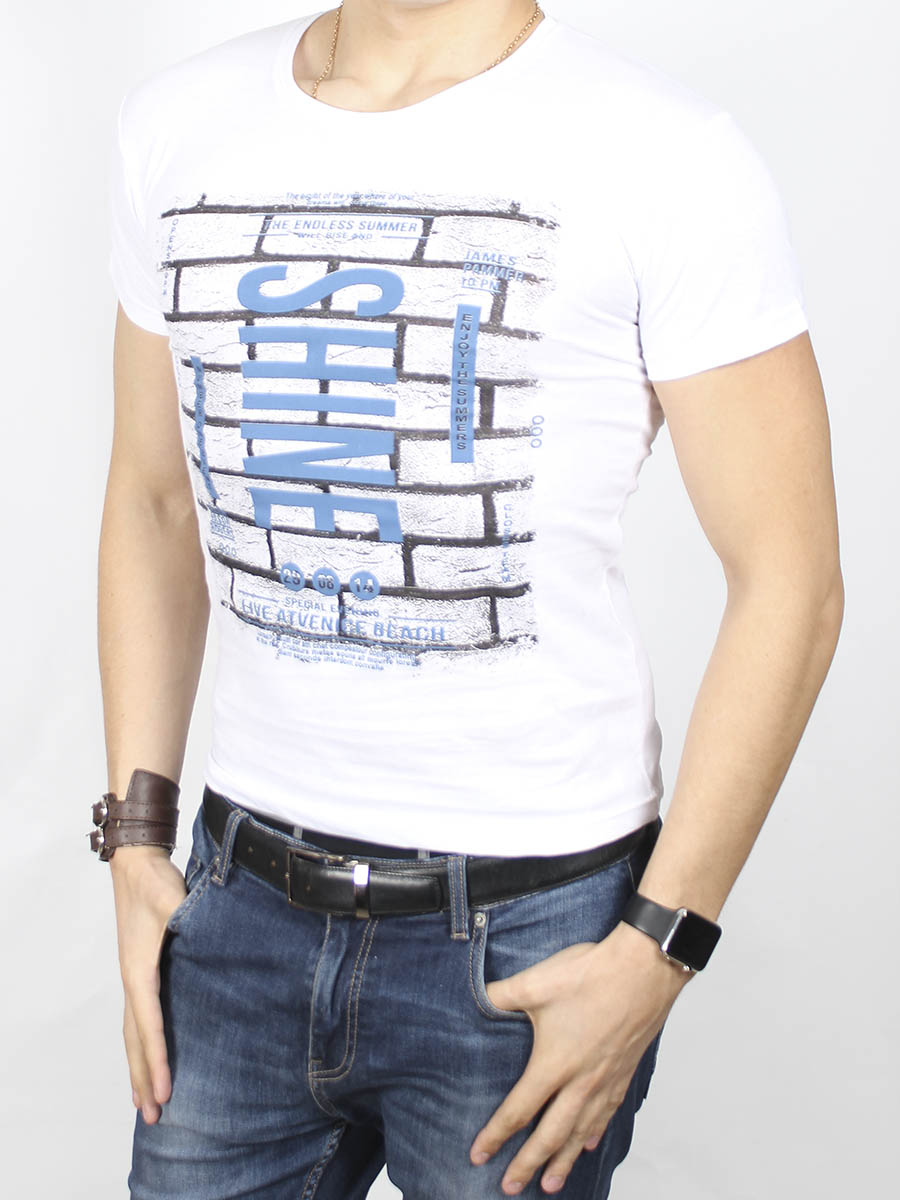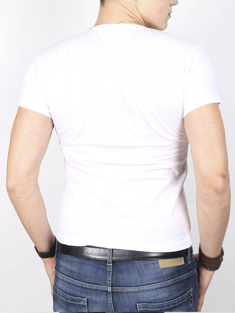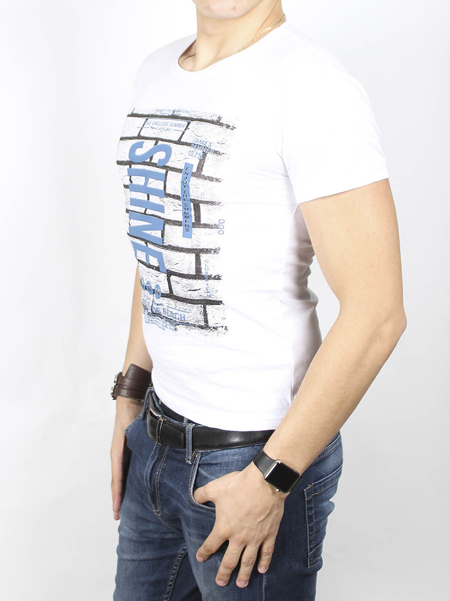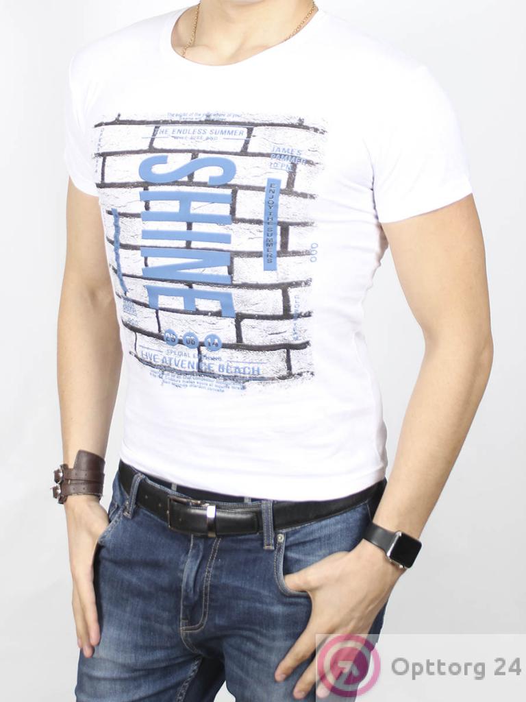Футболка мужская белого цвета с принтом на передней части изделия.