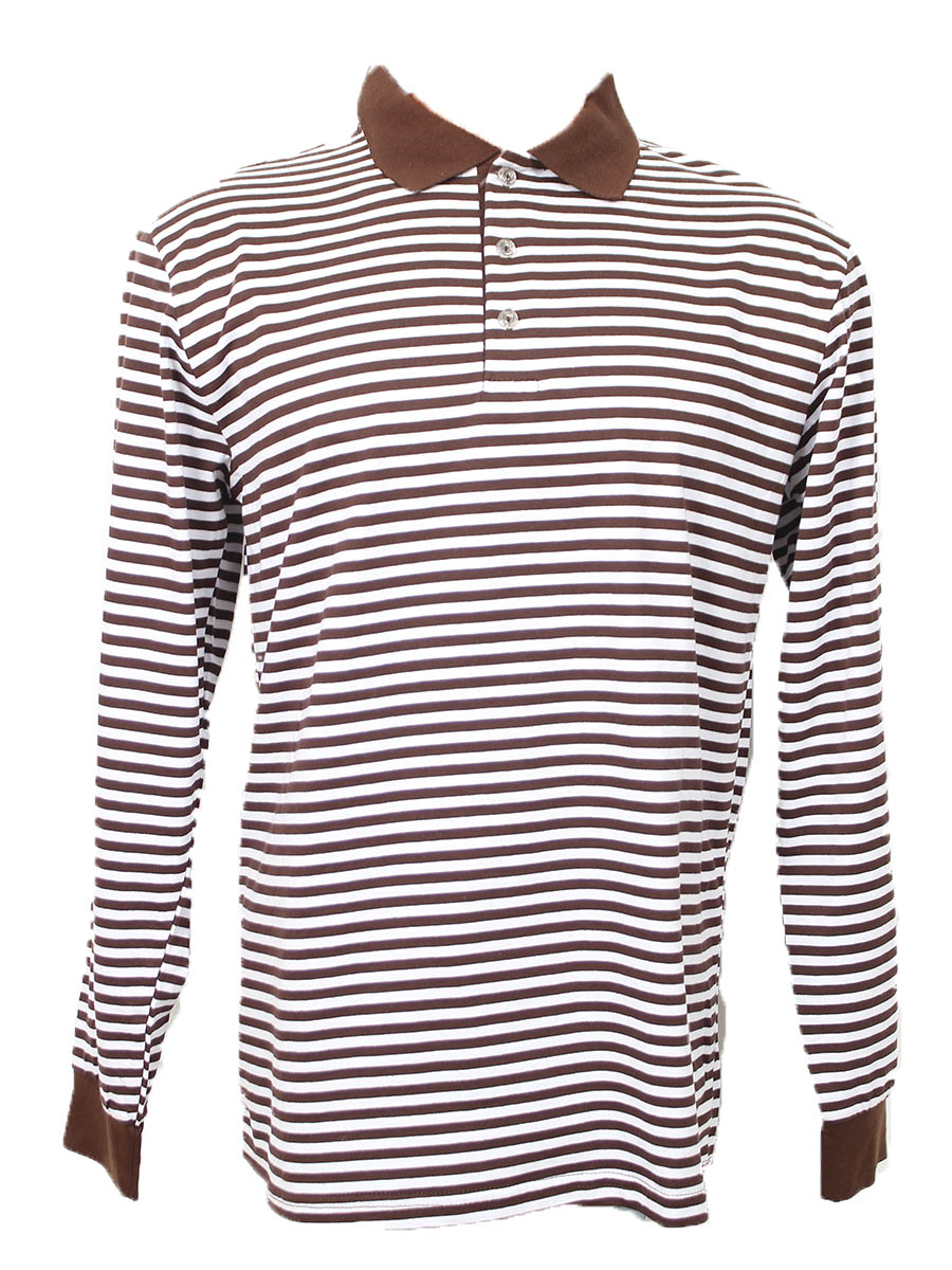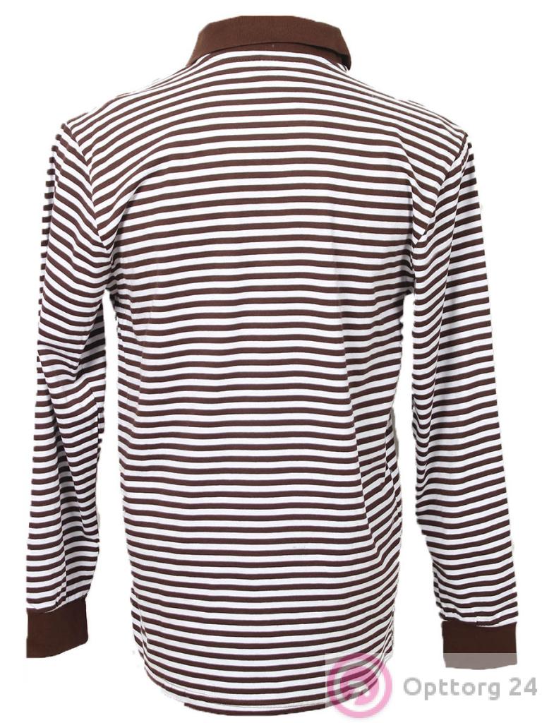 Футболка мужская с длинным рукавом, модель бежевого цвета с коричневой полосой.