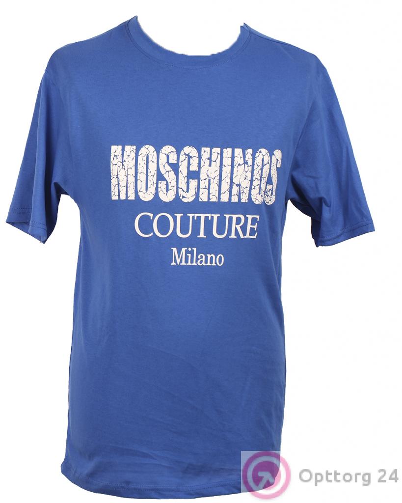 Мужская футболка светло-синего цвета с белым принтом. оптом