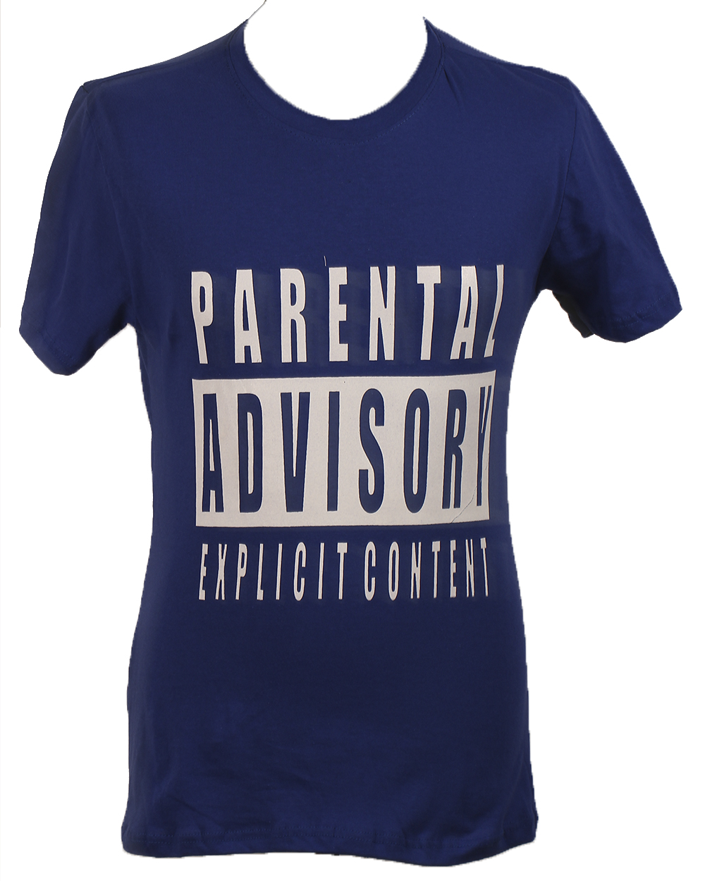 Мужская футболка тёмно-синего цвета с белым принтом на передней части модели.