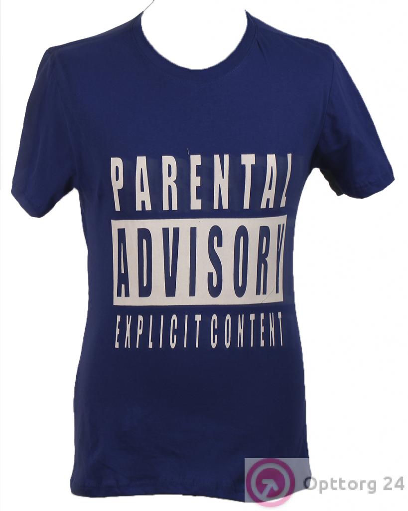 Мужская футболка темно-синего цвета с белым принтом на фронтальной части изделия оптом
