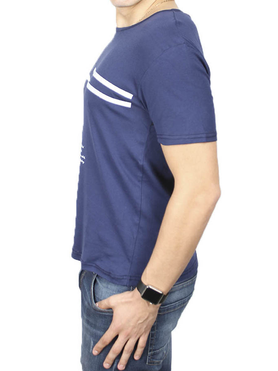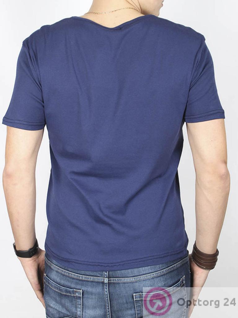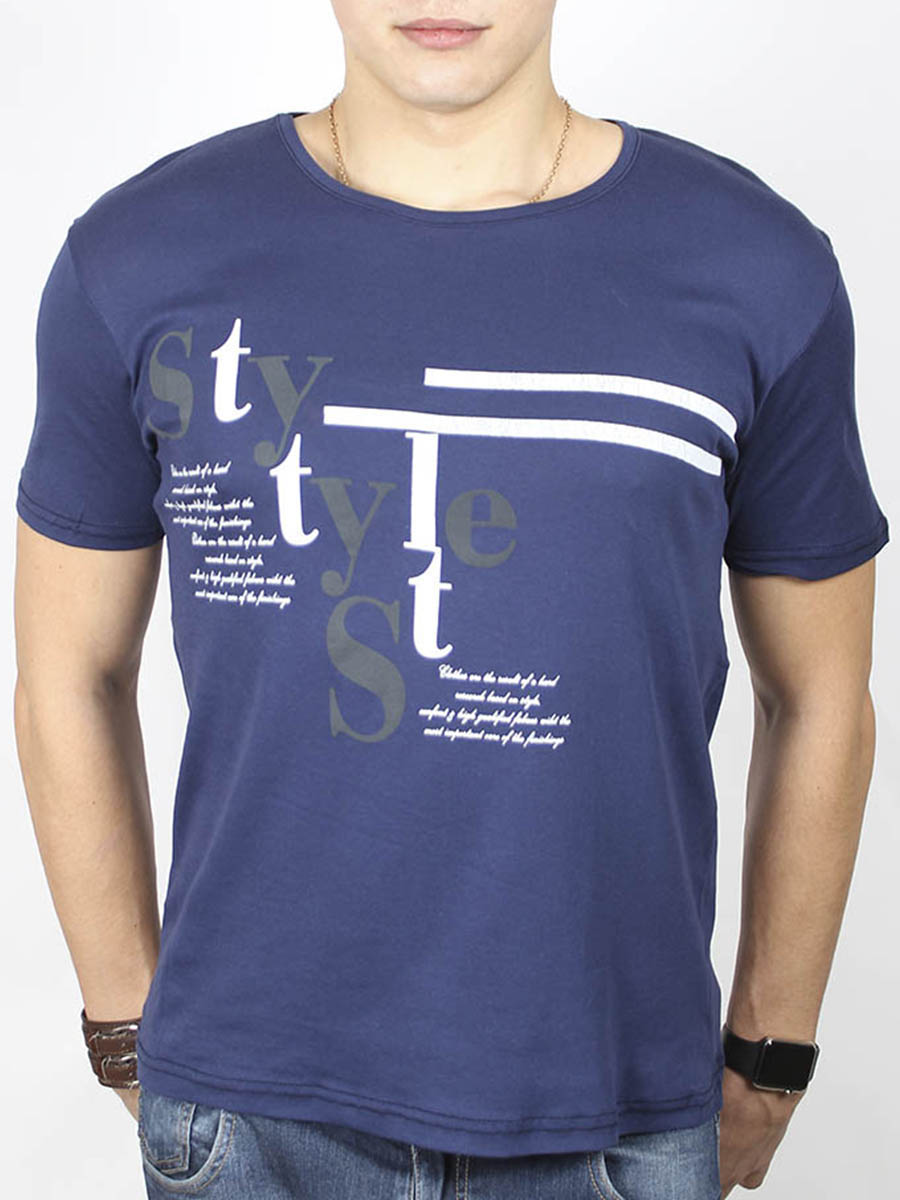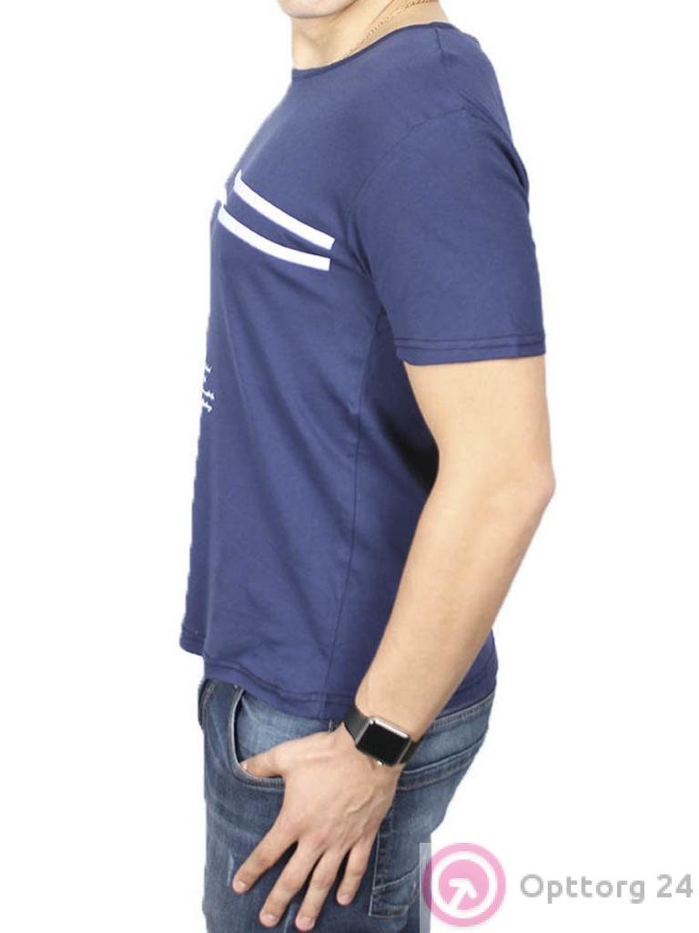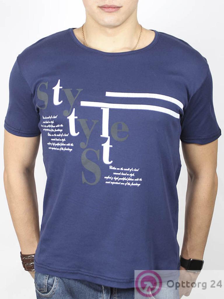 Футболка мужская, темно-синего цвета с принтом в виде надписи.