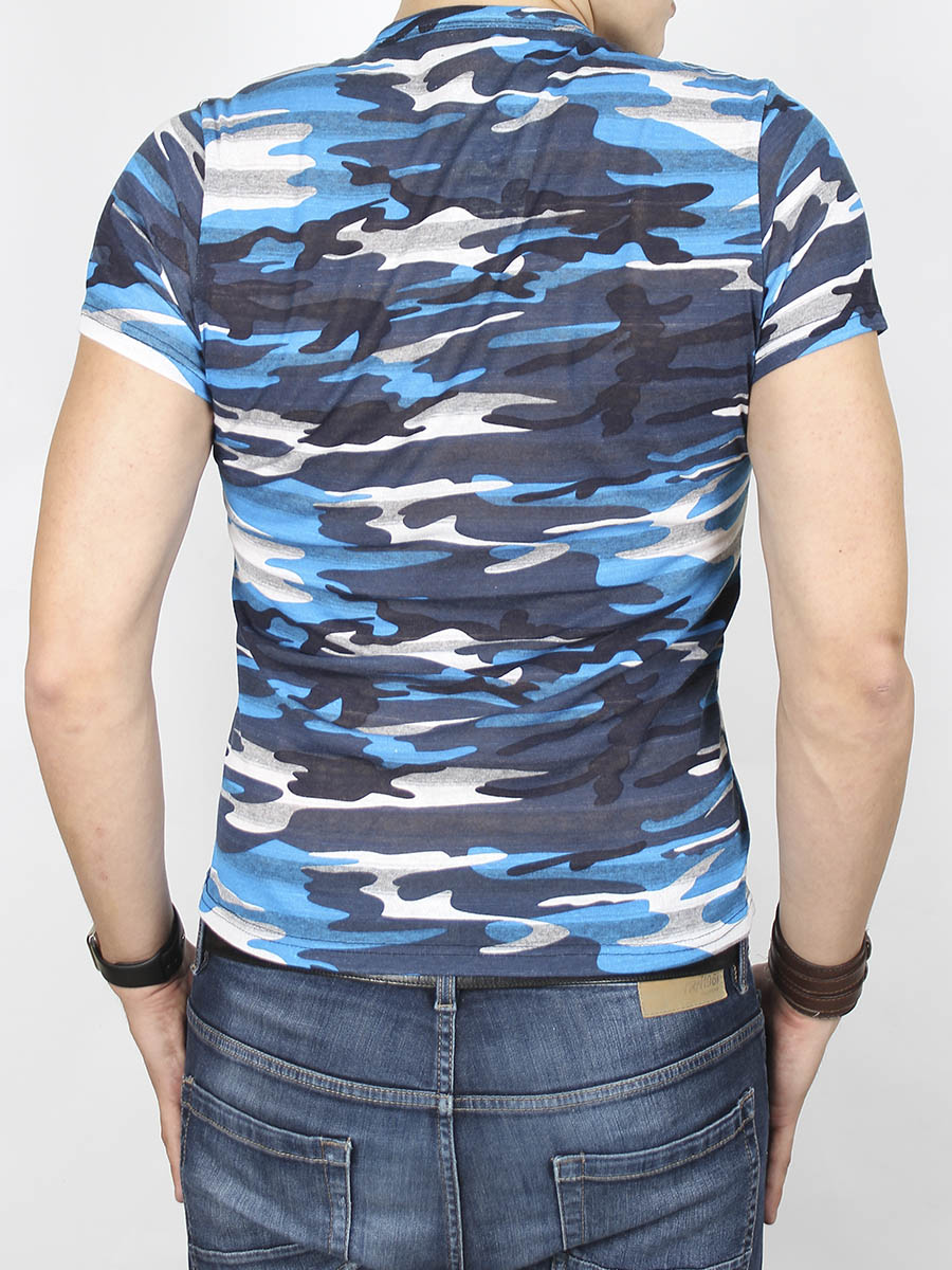 Футболка мцужская защитного расскраса в голубых серых и белых тонах.