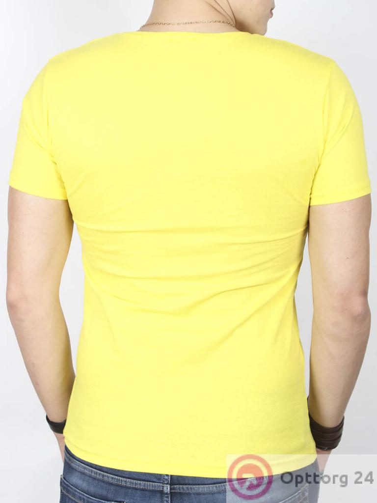 Мужская футболка желтого цвета с принтом в виде надписи черного цвета, оптом