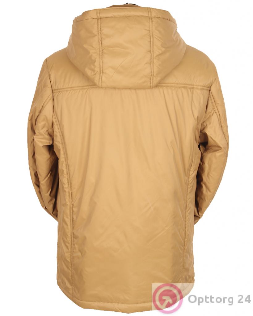 мужская куртка бежевого цвета с нагрудными карманами и капюшоном.