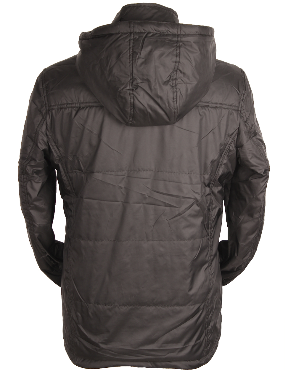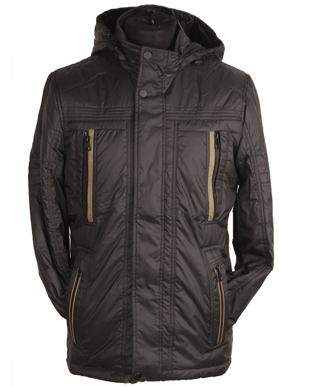 Мужская куртка черного цвета с нагрудными карманами со вставками бежевого цвета.