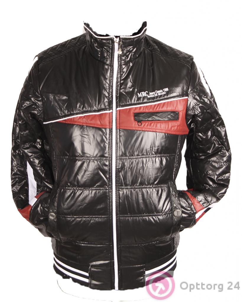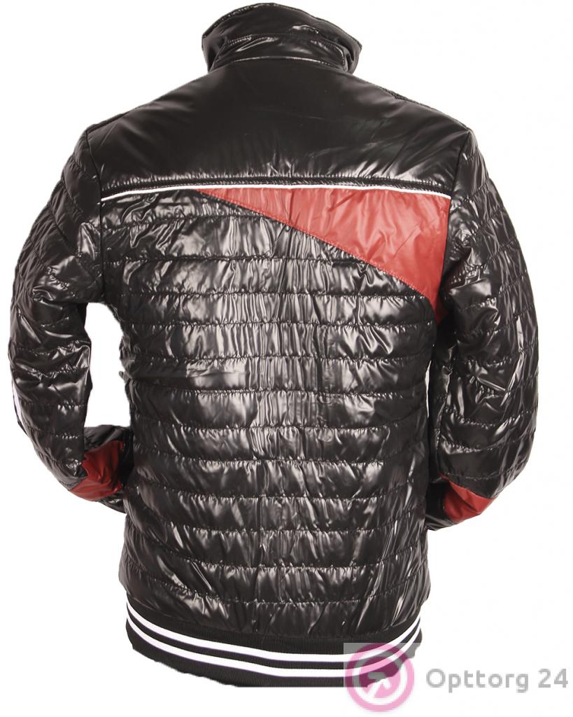 Мужская куртка глянцевого черного цвета с красными вставками на груди. оптом