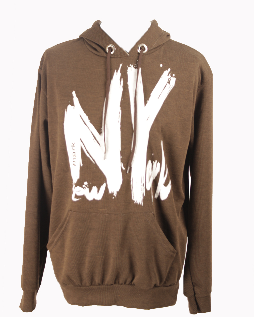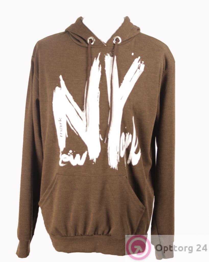 Толстовка мужская, коричневого цвета с белым принтом.Удобная модель с капюшоном.