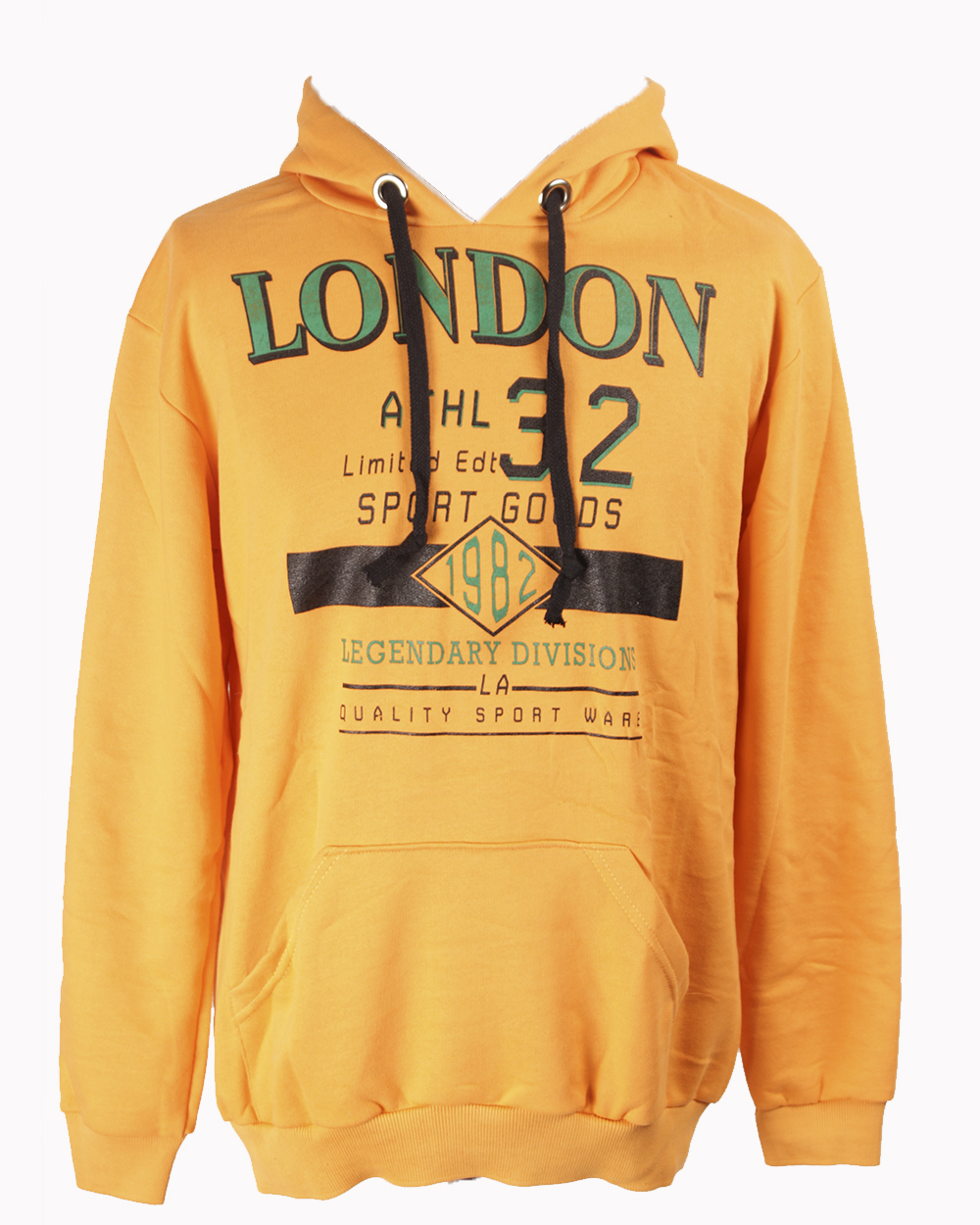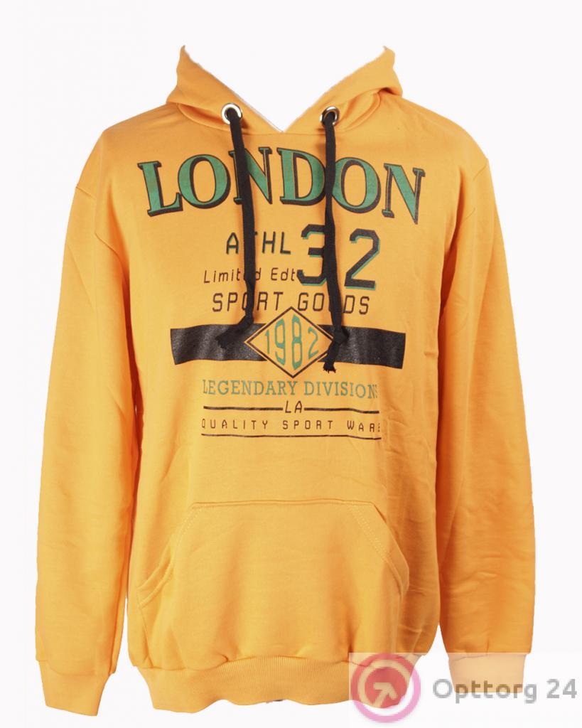 Мужская, яркая толстовка оранжевого цвета с принтом в виде надписи "London"