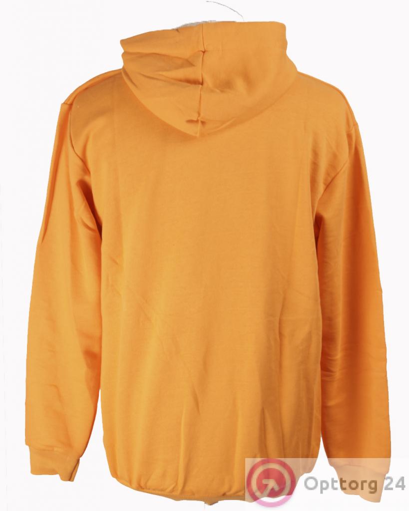 Мужская толстовка оранжевого цвета с капюшоном и принтом в области груди. оптом