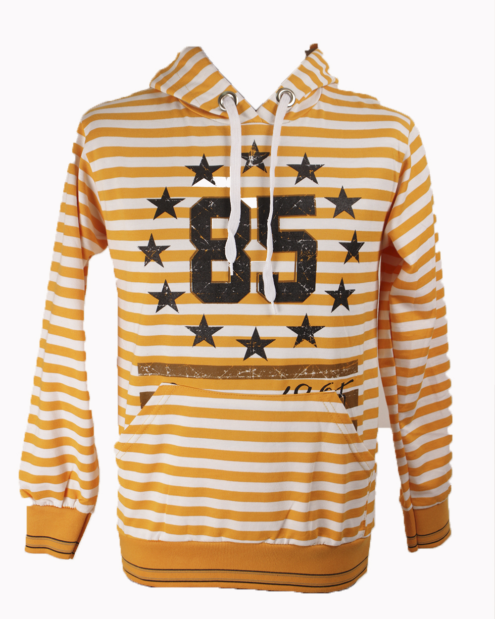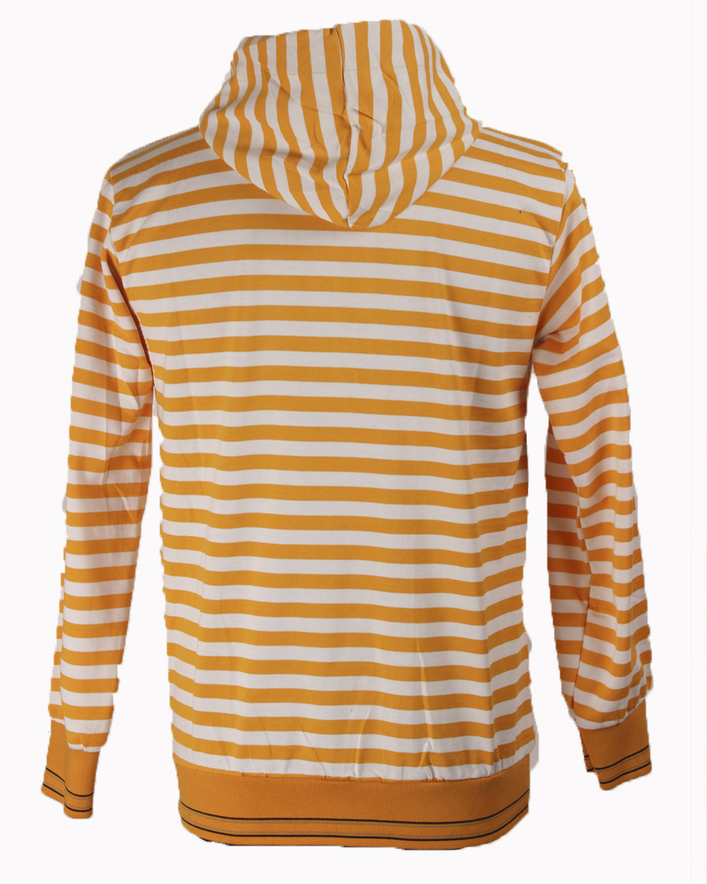 Мужская толстовка в горизонтальную желто-белую полоску.
