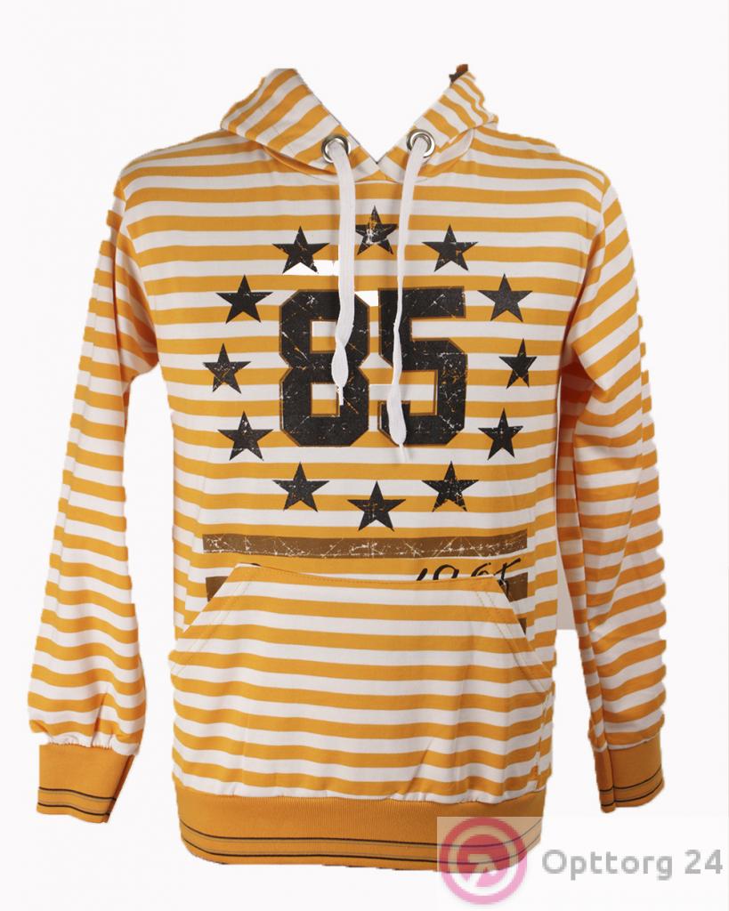 Мужская толстовка в горизонтальную полоско бело-желтого цвета оптом