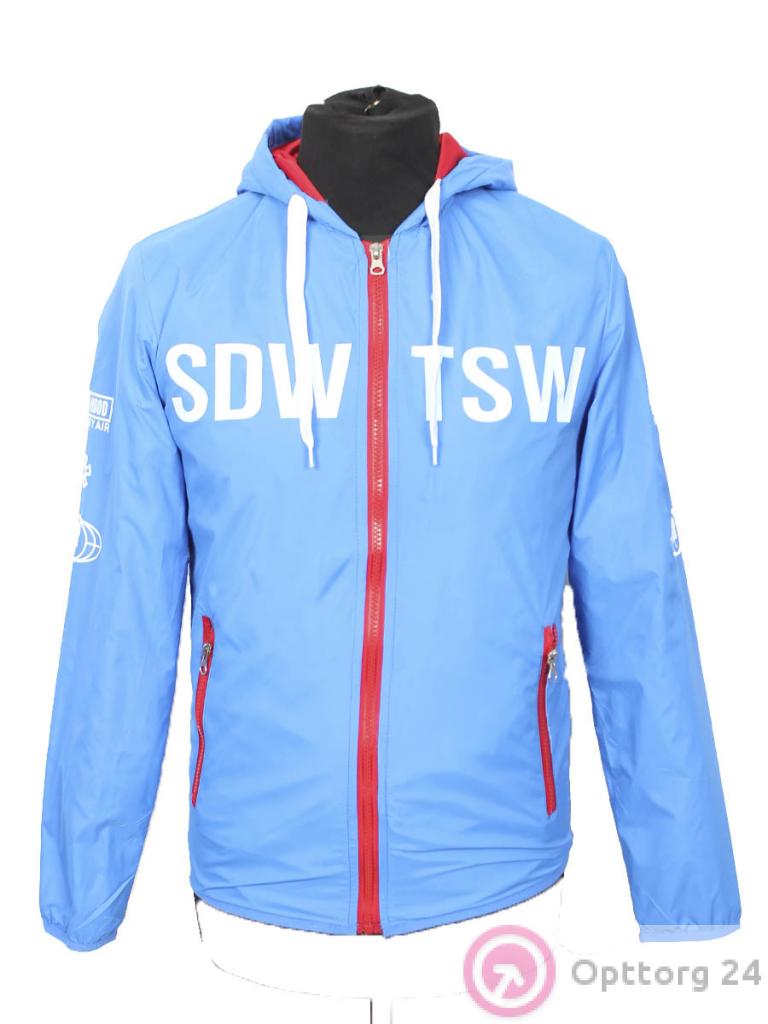 Мужская ветровка голубого цвета с красной молнией. оптом