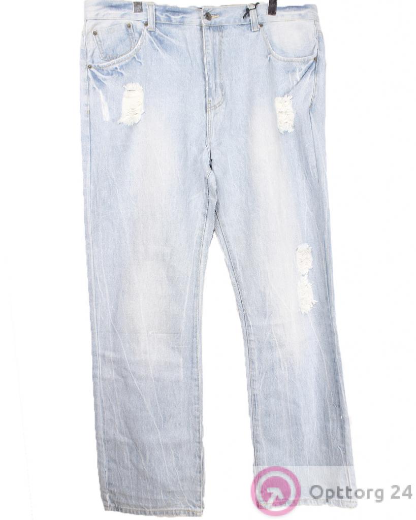 Мужские джынсы светло-голубого цвета. на модели есть легкие потёртости.