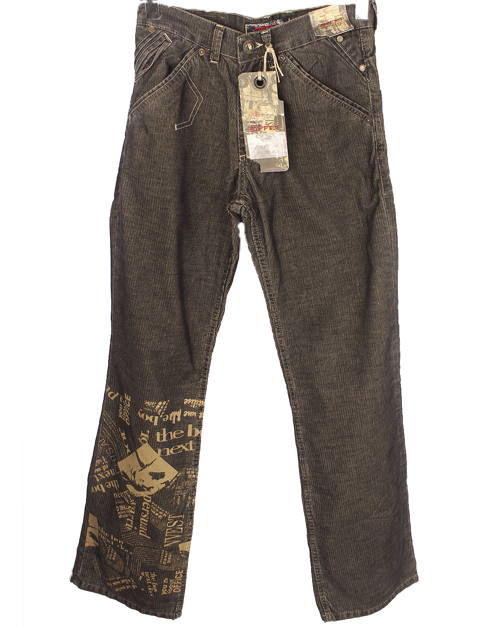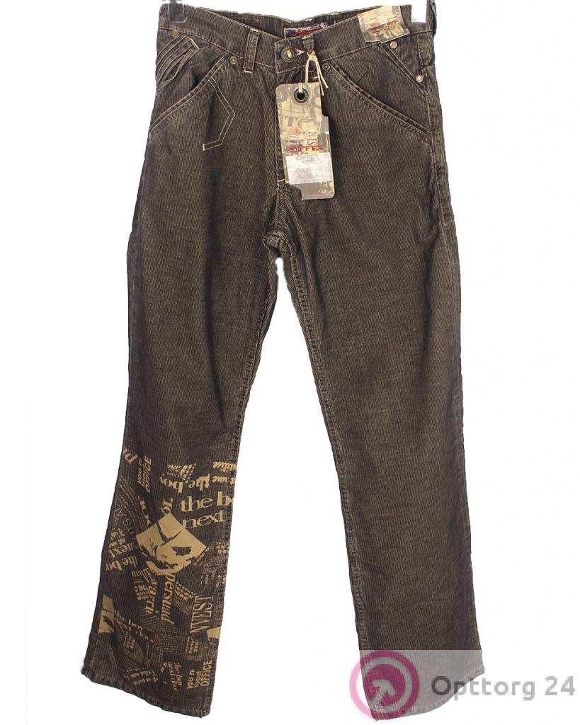 Мужские джинсы коричневого цвета с принтом на штанине. оптом