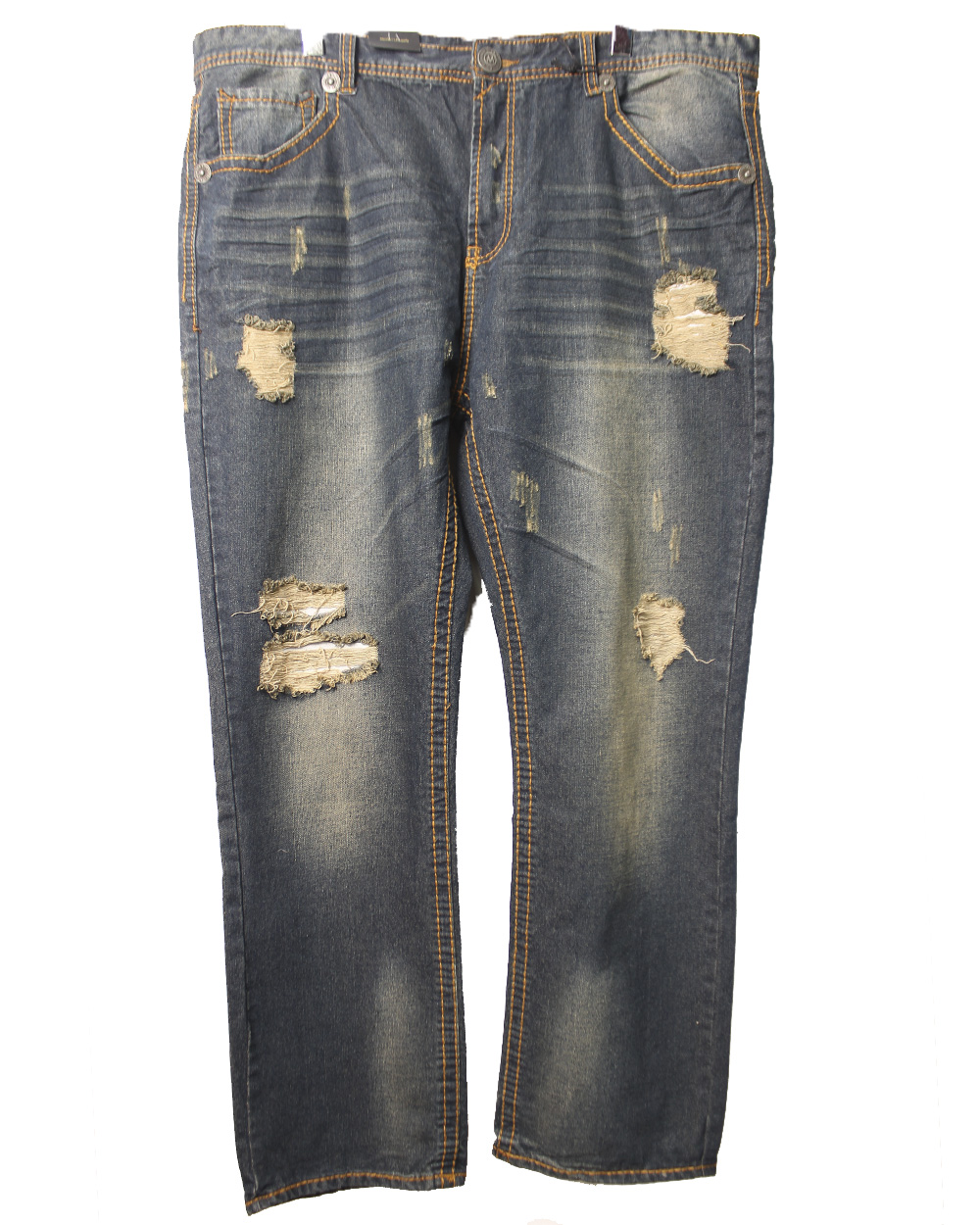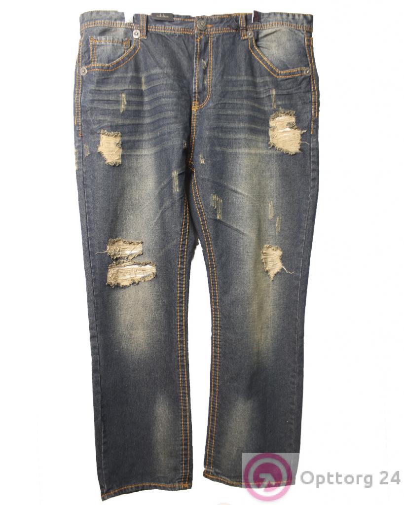 Мужские джинсы темного цвета с потёртостями на коленях оптом