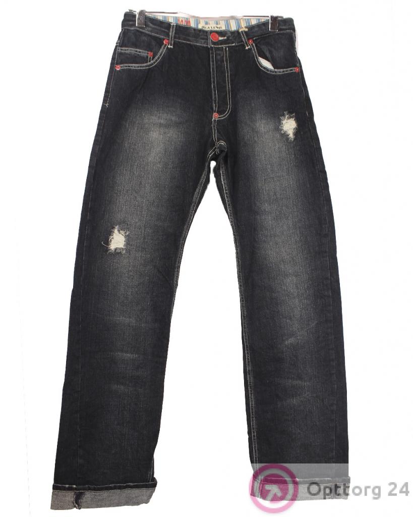 мужские тёмные джинсы с мелкими потёртостями оптом