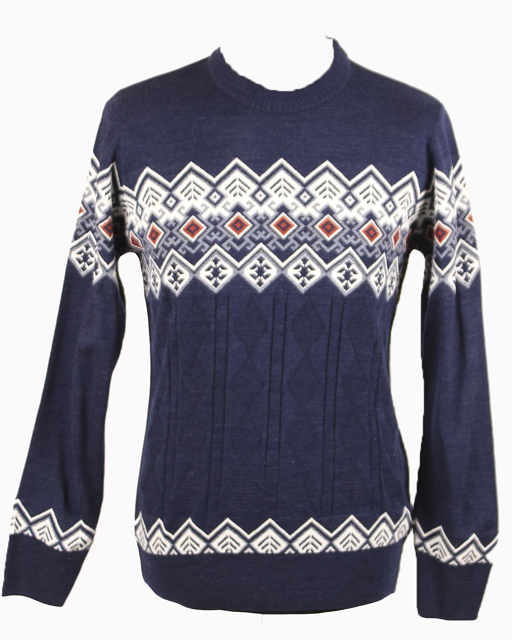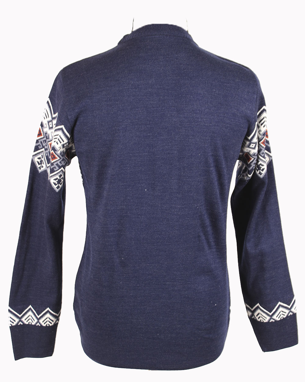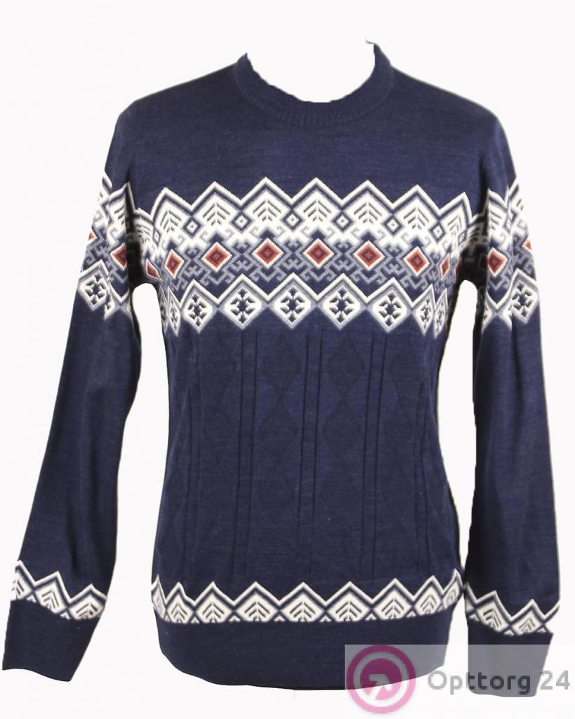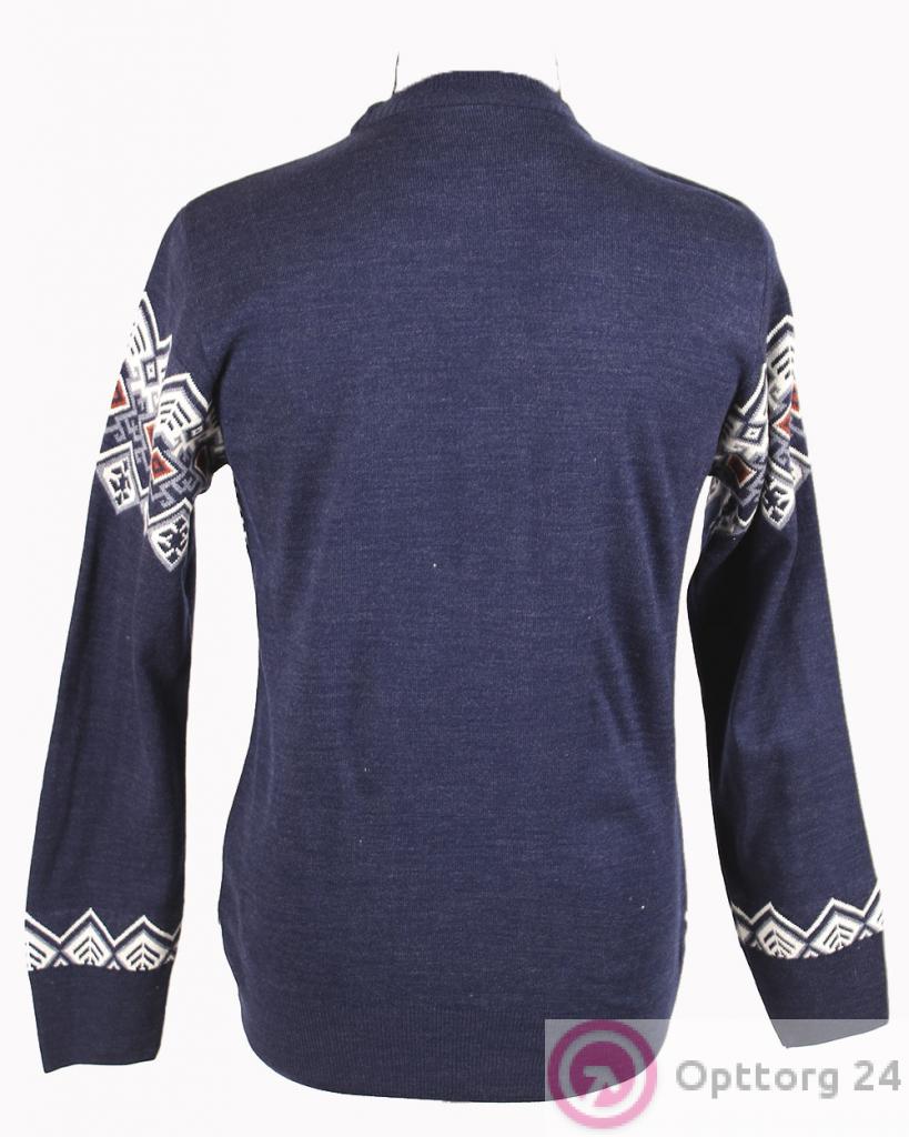 Мужской джемпер синего цвета с цветным иероглифом на груди оптом