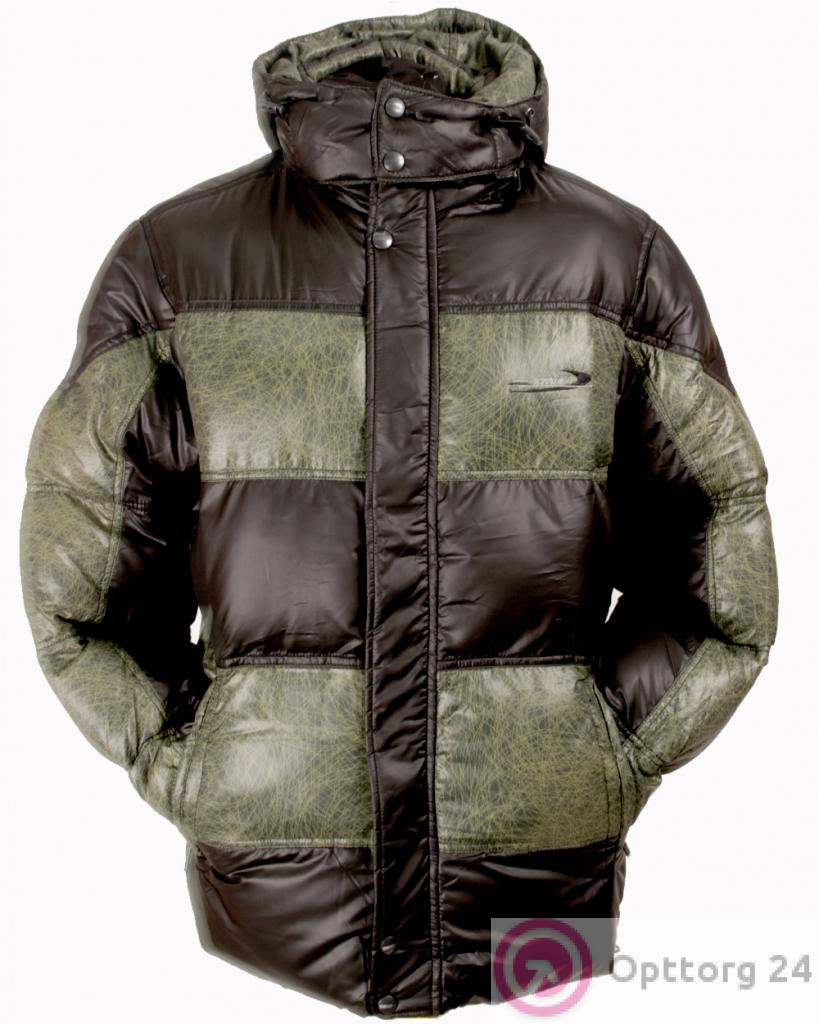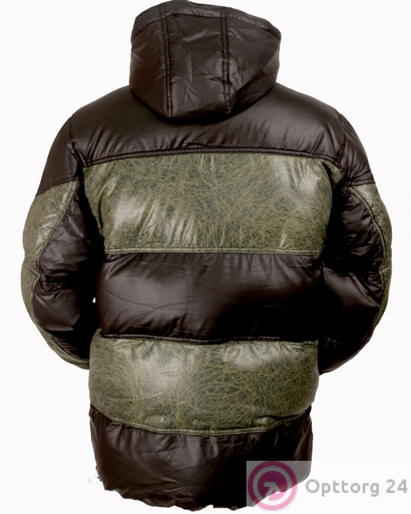 Мужской пуховик черного цвета с тёмно-зелёными вставками. оптом