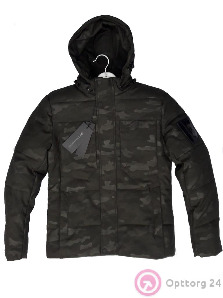 Куртка для мужчин защитного цвета с капюшоном и карманами. Удобная и практичная.