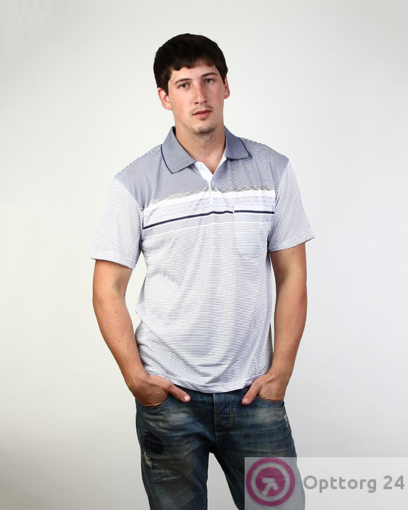 Поло мужское белое с геометрическим рисунком оптом