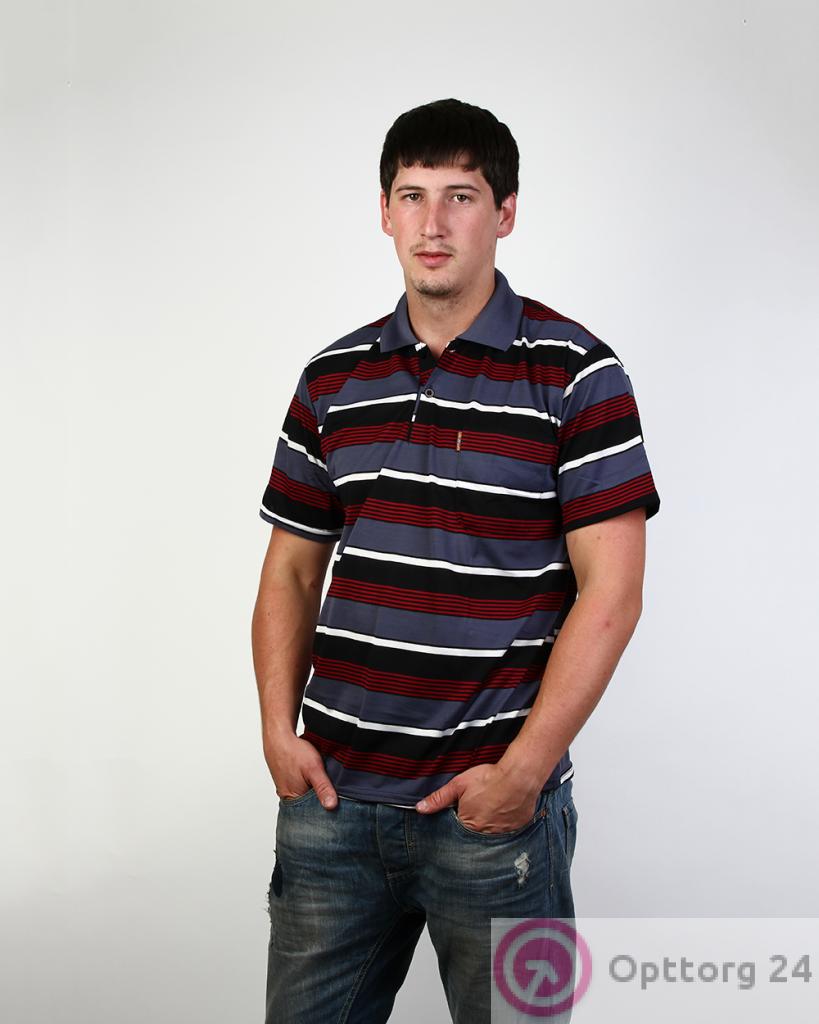 Поло мужское серо-красное в белую полоску оптом