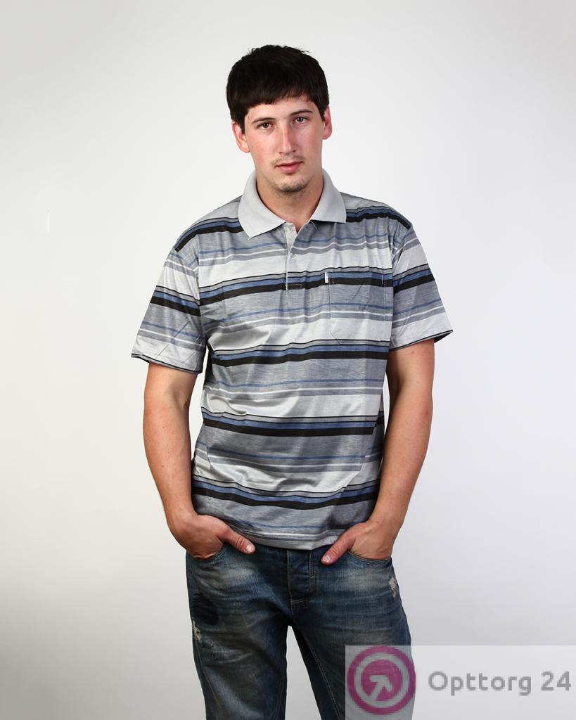 Поло мужское серое в сине-черную полоску оптом