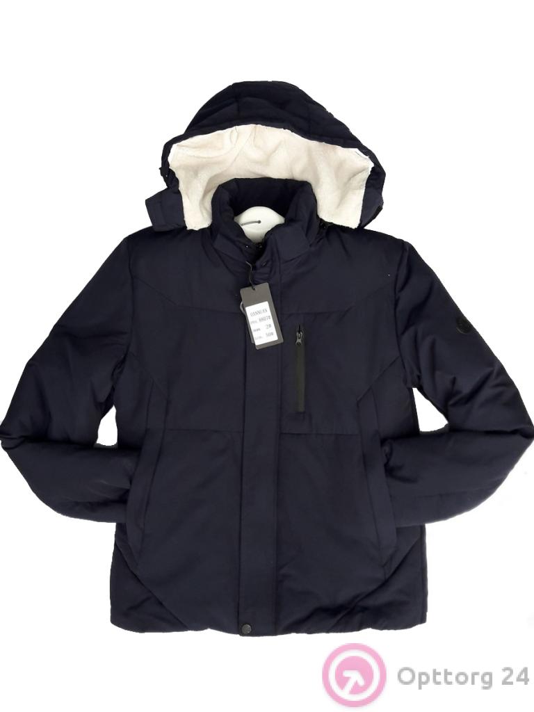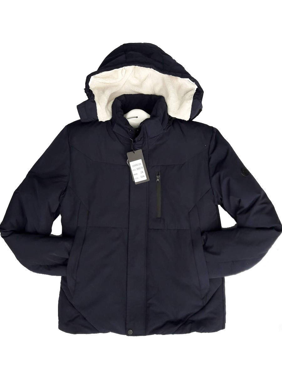 Зимний пуховик темно-синего цвета с карманами и капюшоном для настоящих мужчин. Теплый и удобный.