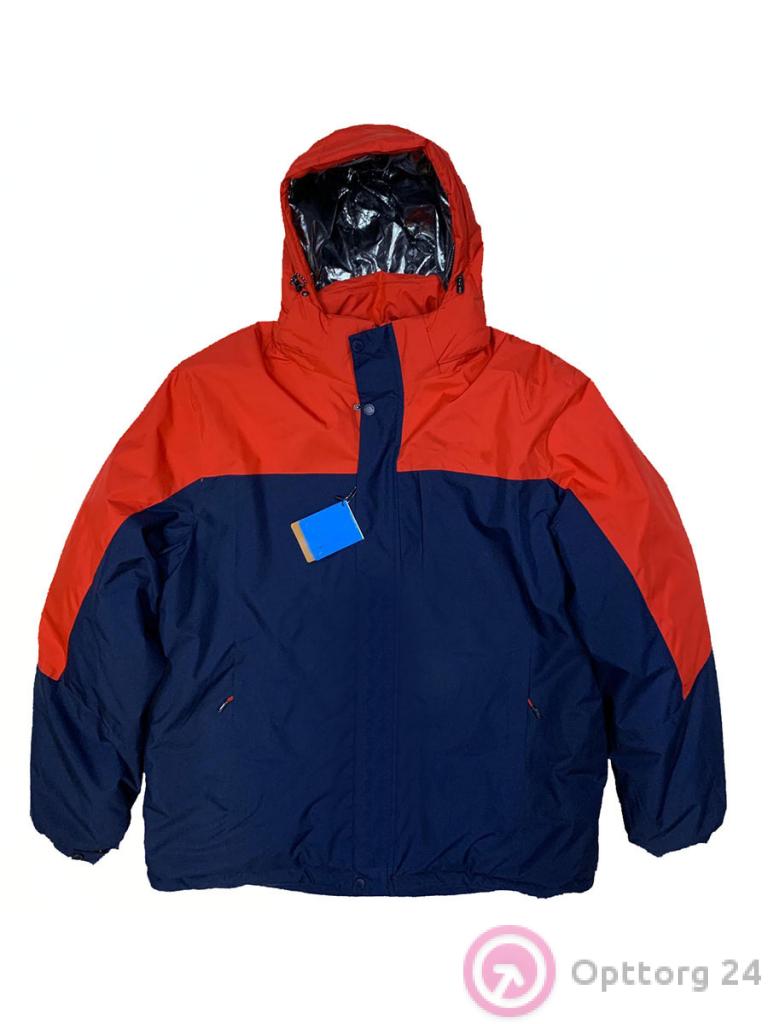 Пуховик мужской Большого Размера спортивного стиля сине-красного цвета оптом