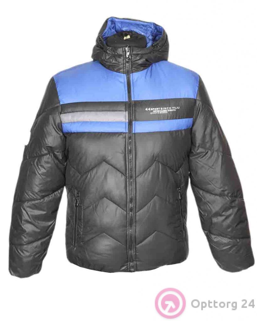 Пуховик мужской черный с голубым верхом оптом