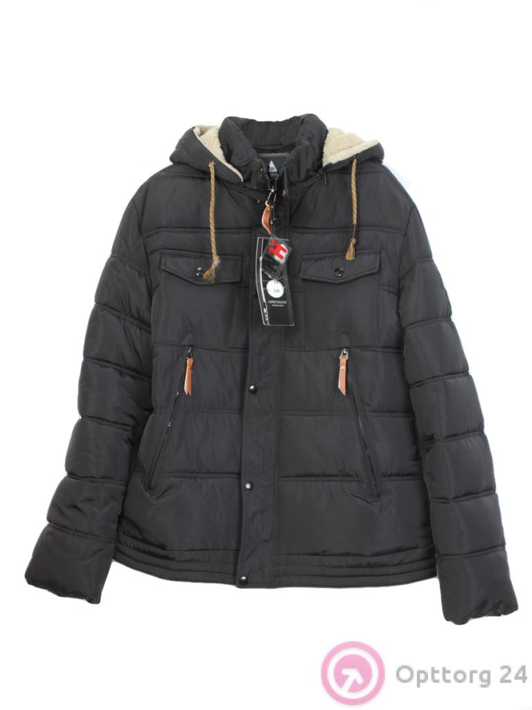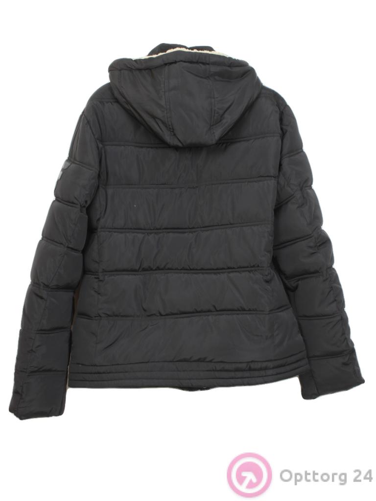 Мужской пуховик черного цвета с капюшоном и большим количеством карманов. Очень практичная и удобная модель.