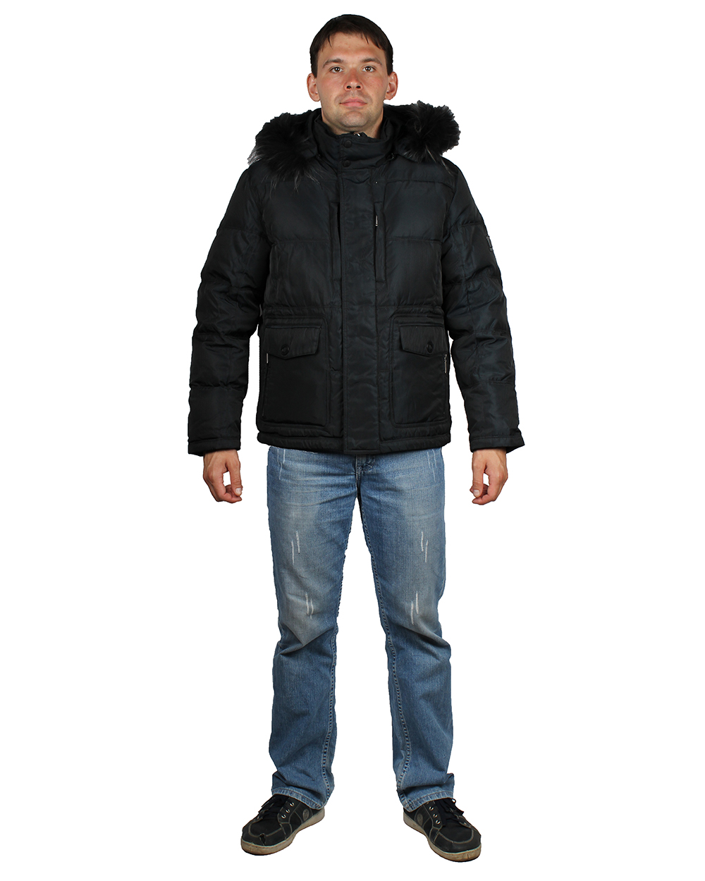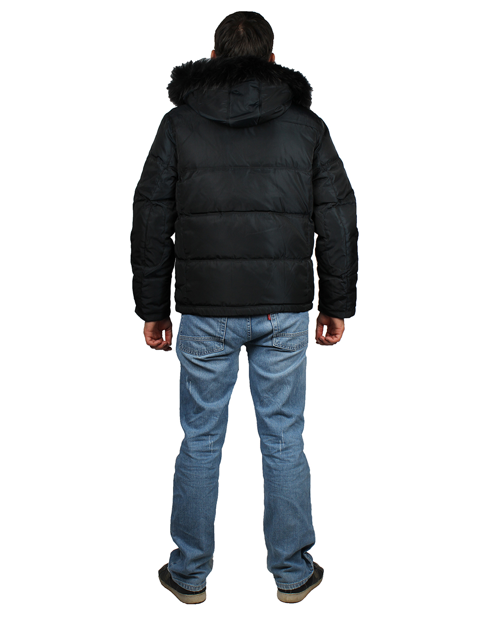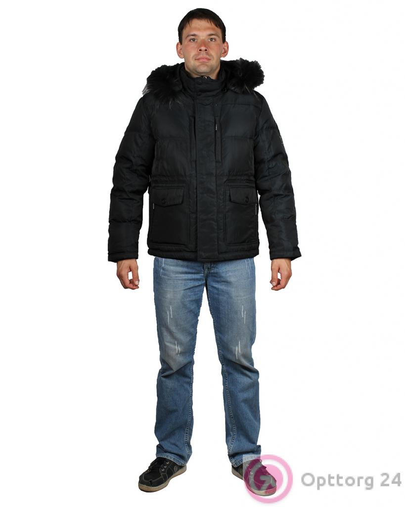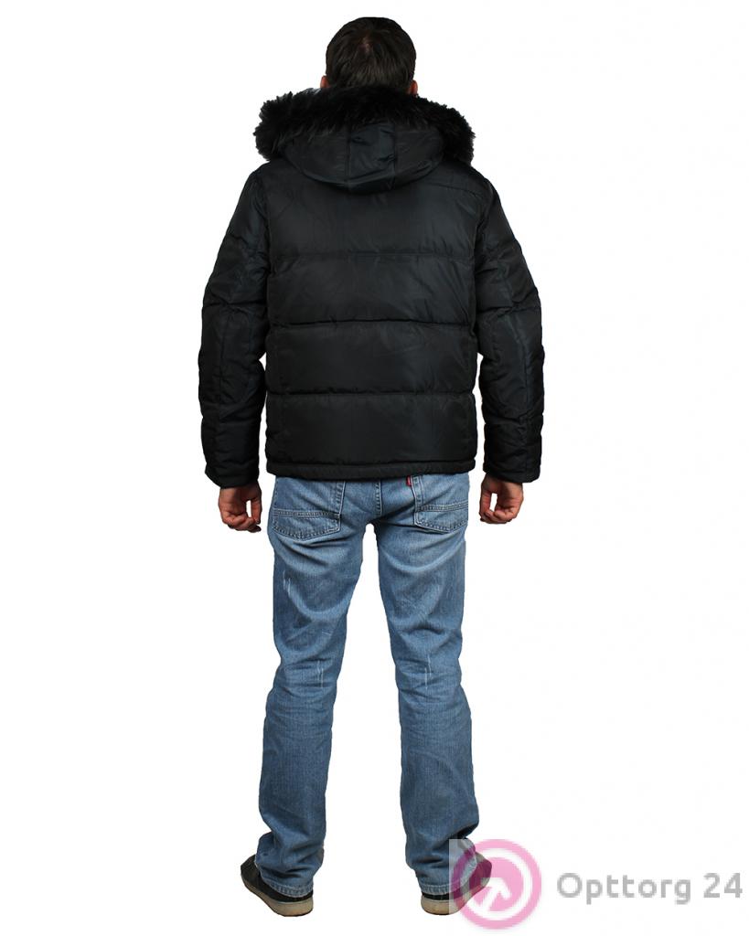 Пуховик мужской чёрный с натуральным мехом на капюшоне оптом