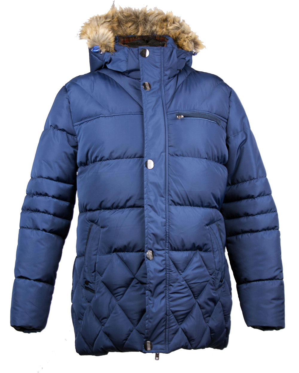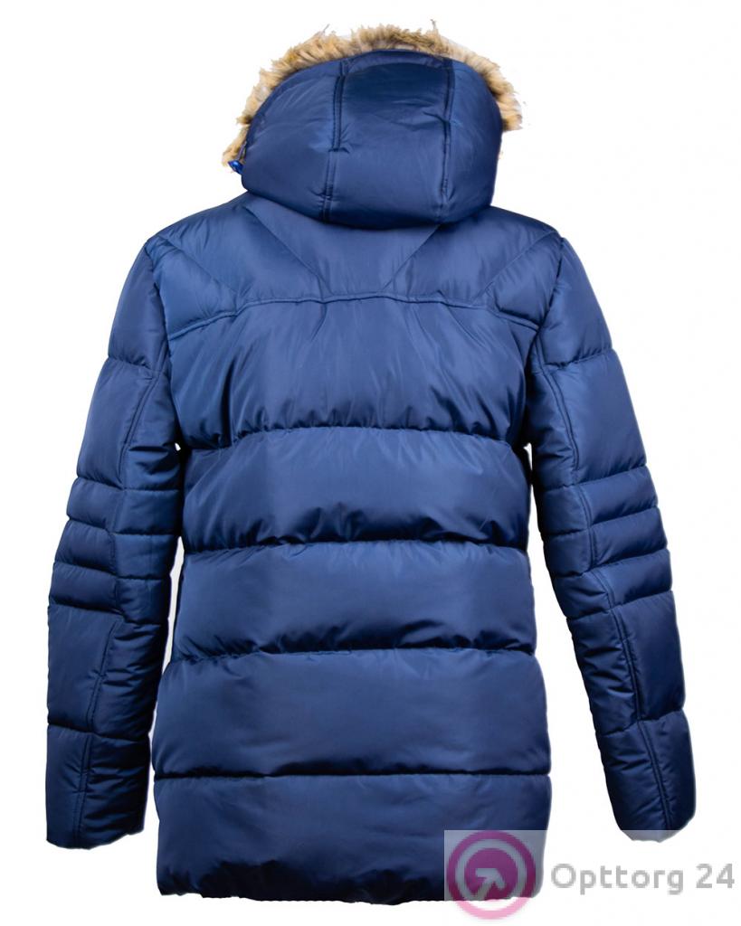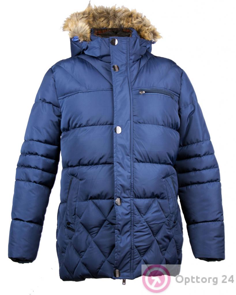 Пуховик мужской темно-синий стёганный с натуральным мехом оптом